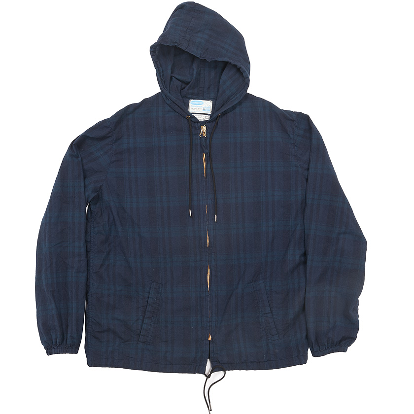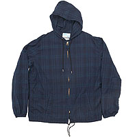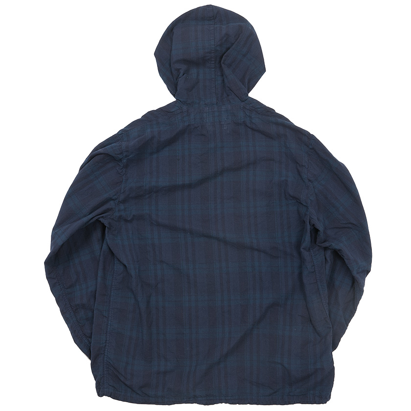 縫製上がりのパーカーを、製品染めしてダークマドラスにしています。チェックのトーンがかなり抑えられるので、組み合わせやすい色・柄になっています。