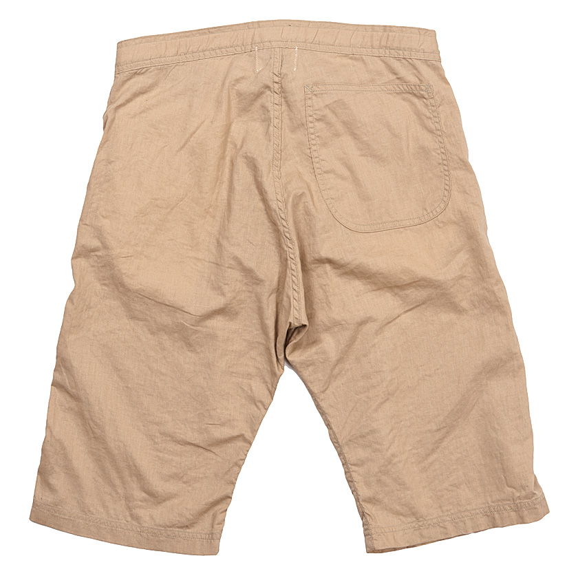 Easy Pantsの名の通り、ベルトループ無し。紐でウェストを調節してはきます。コインポケットは無く、バックポケットもUS. Marine Coのパンツから型どりした丸型を一つだけ。