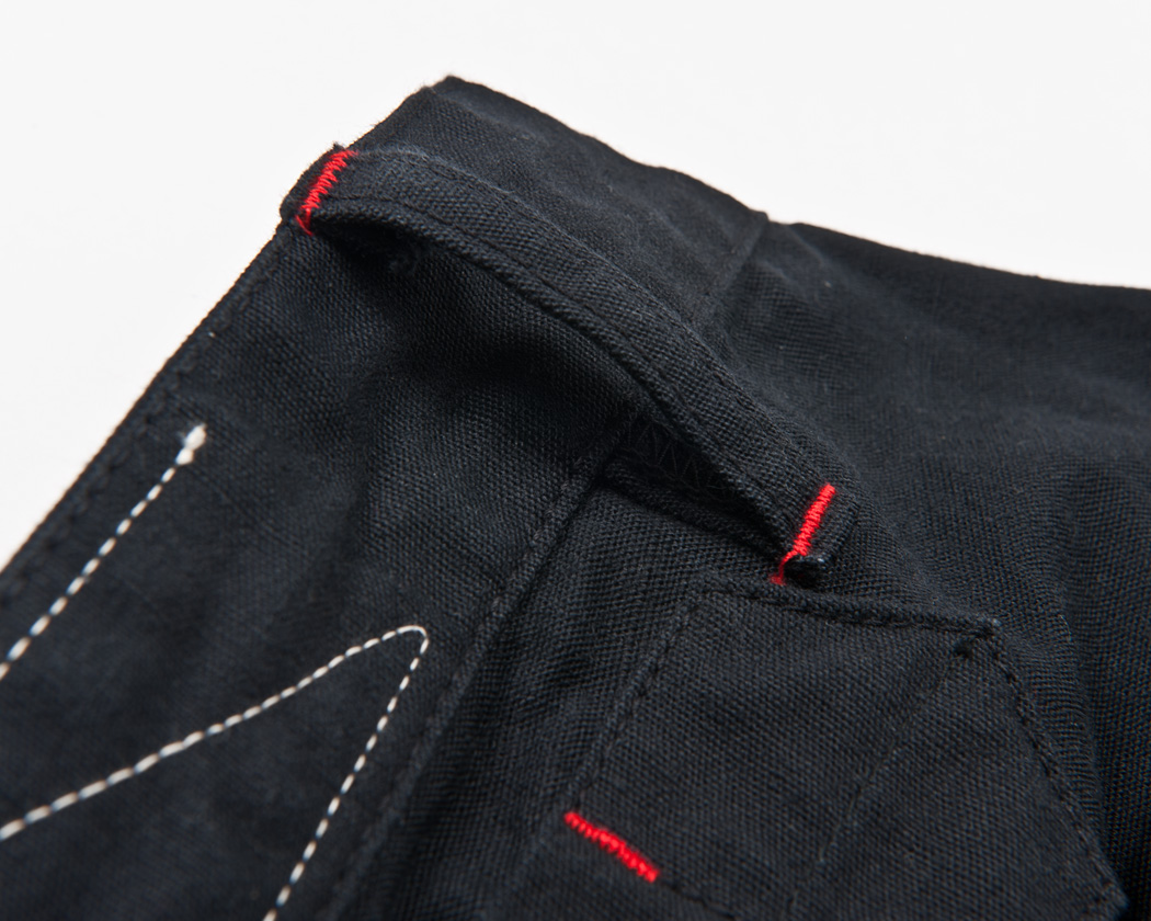 XXだと、これが通称「バンザイ付け」になるのですが、今回のワークパンツの場合、帯始末のステッチを2本一緒に行ってしまうのでバンザイ付けはできません。