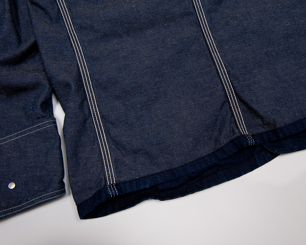 裏からジャケットを見ると、あらゆる部分が巻き縫いで縫い合わせられているのがわかります。