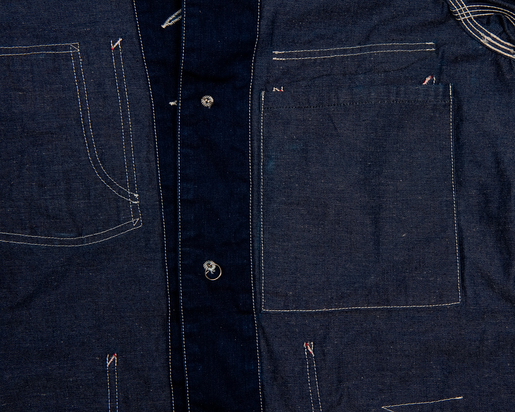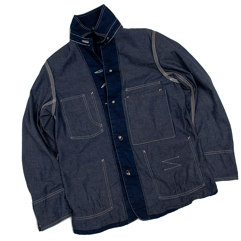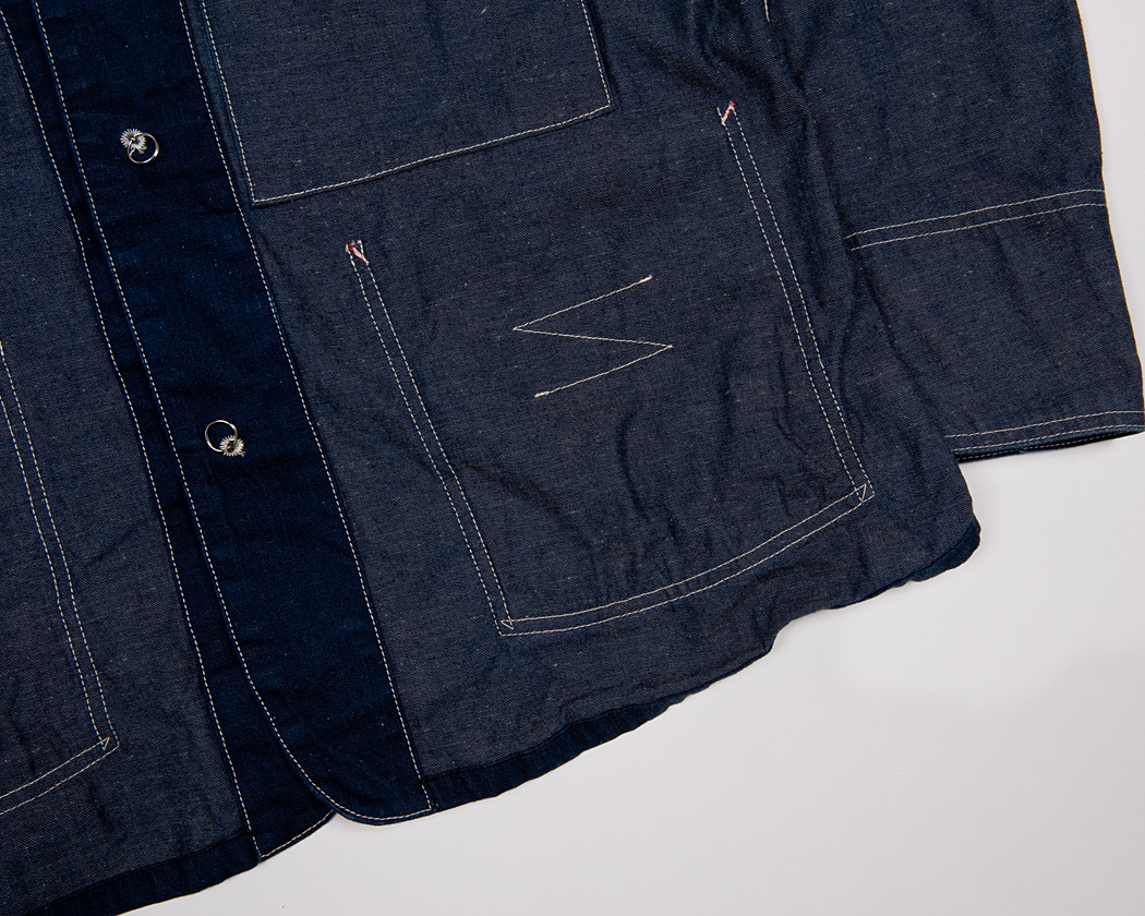 それを、後世の我々が見ると「ワークウェアでカバーオールやワークパンツの妙に太い巻き縫い・・・力強くワークウェアらしい」と、違った意味がそこに生まれています。