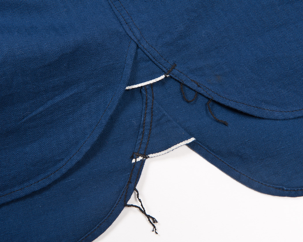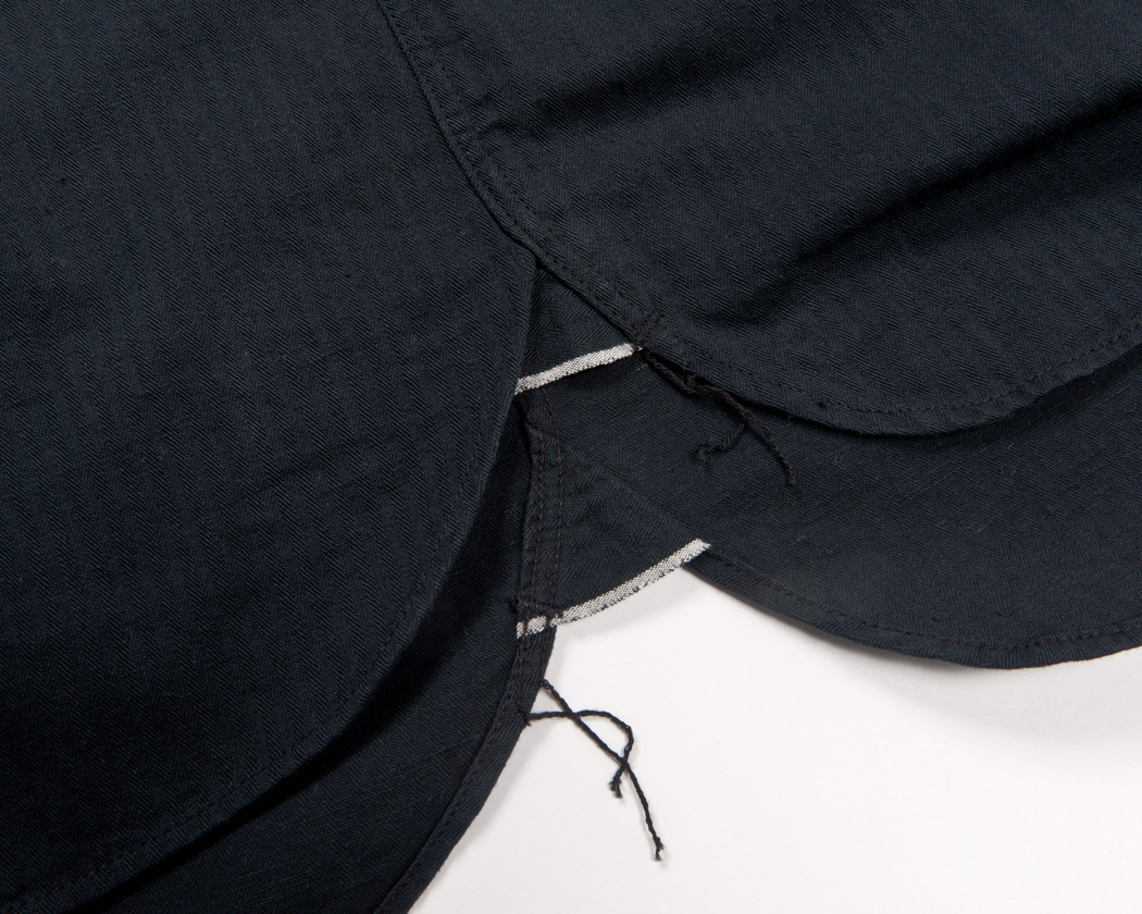 脇はおなじみのマチ始末。縫いどまりはカンヌキで補強しています。