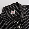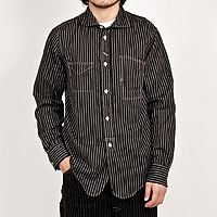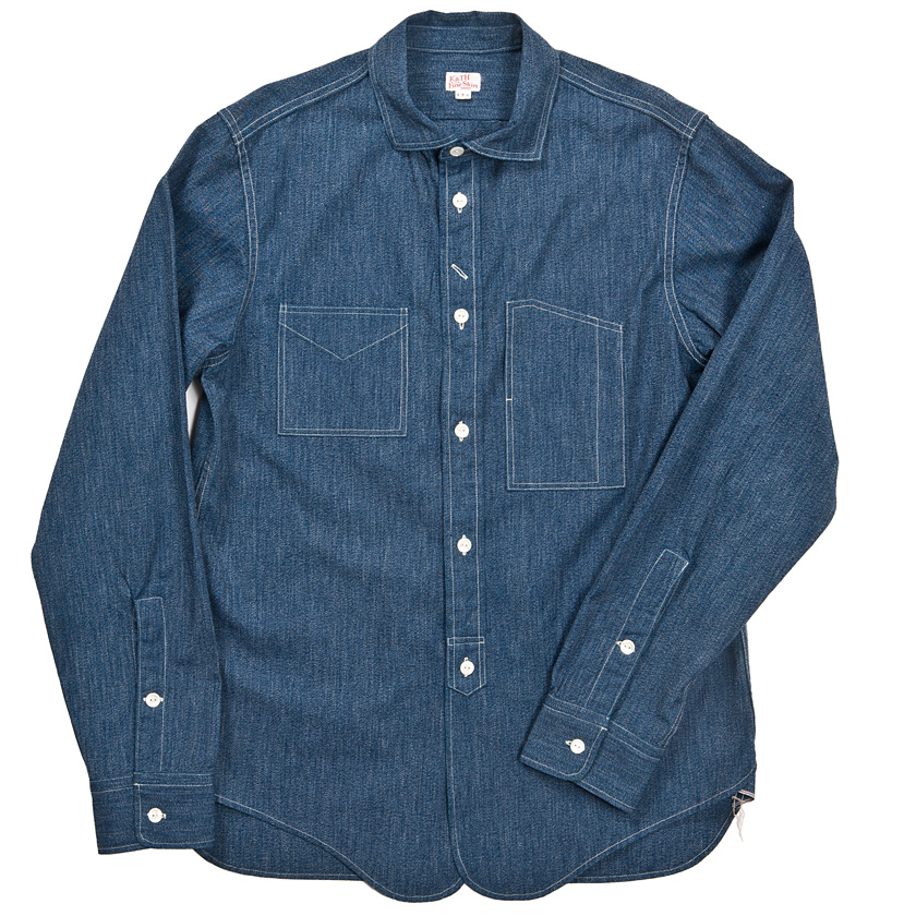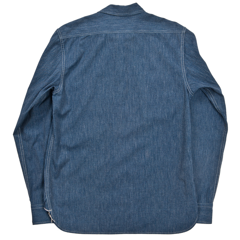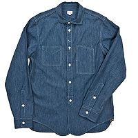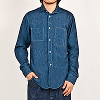 襟を開き気味かつ、角型にし、Reliance型などのワークシャツとの違いを強調しています。台襟はあえてチンストラップを無くし、組み合わせやすい一枚にしています。
