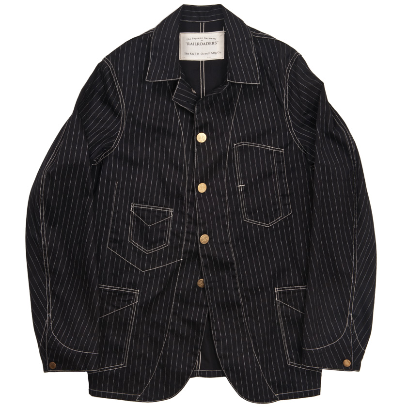 参考にしたオリジナルに出来うる限り近く、6オンスというシャツ地に近い生地で作ったカバーオールです。テーラードに近いウェスト絞り、袖の前振り、ラウンドした前立てが特徴的です。