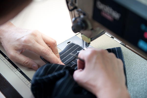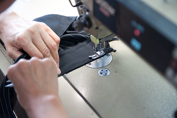 自分で縫うのでわかるのですが、縫いなれた製品は体が順番を覚えているのでとにかく早いのです。これを、下手に止めると仕上がりが変に成るので、撮影したい反面、気持ちがわかるだけに難しいところです。