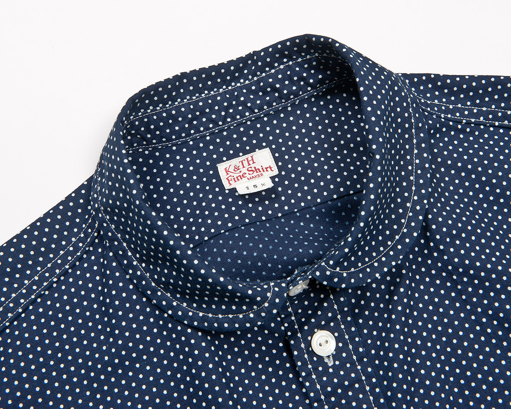 子供服ですが、手元にあるポルカドットのシャツもラウンドカラー。