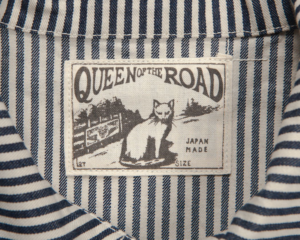 オリジナルを参考にしつつ、犬を猫に変更したQUEEN OF THE ROADラベル。