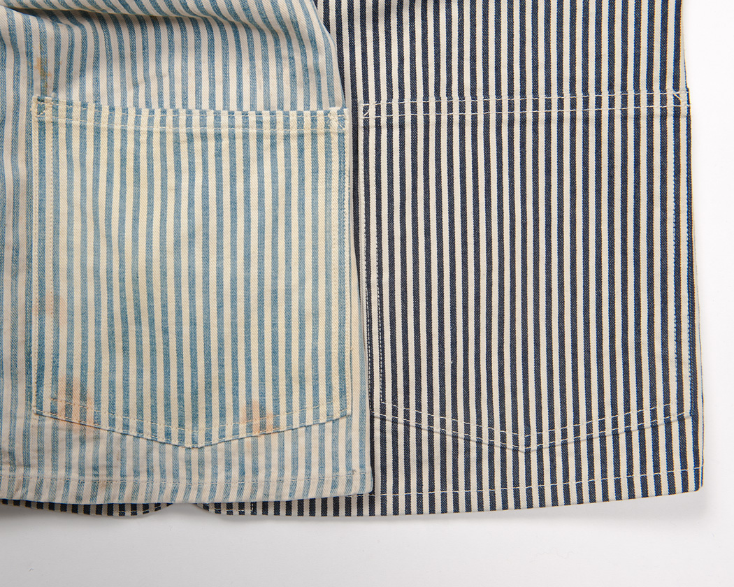 ポケットの形、ステッチの入れ方、目数を出来る限り実物に近付けています。特徴的な、角のステッチで入れた補強も再現しています。