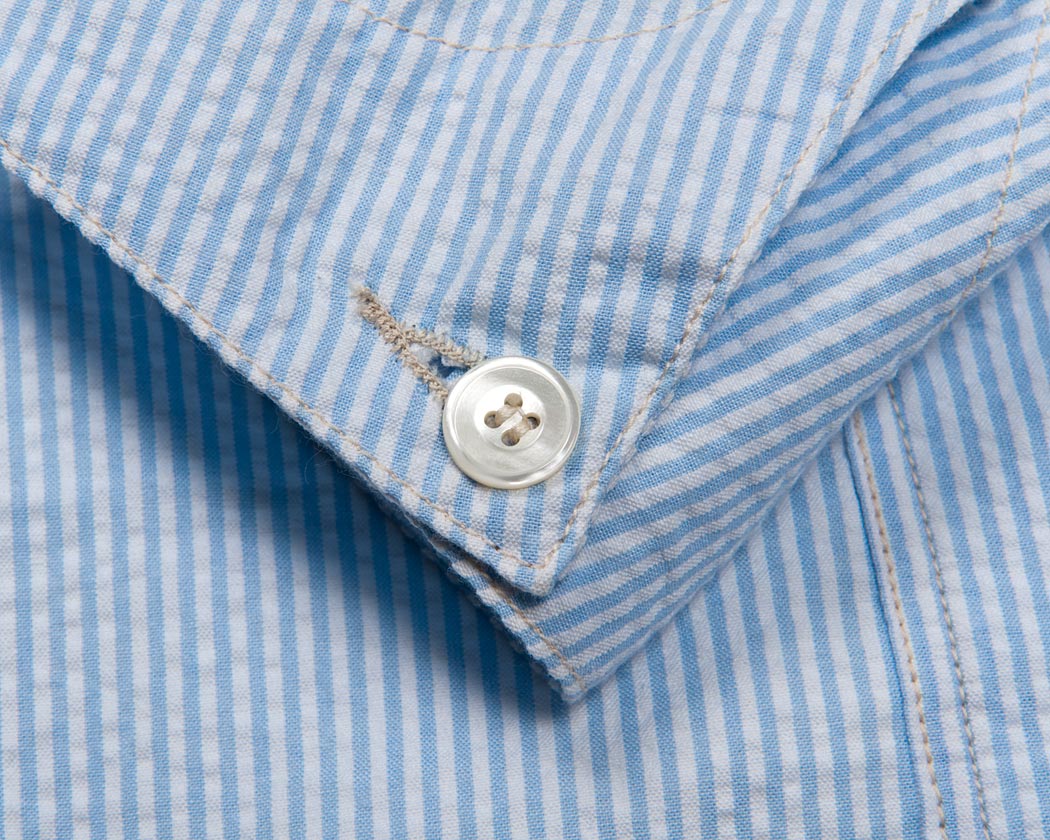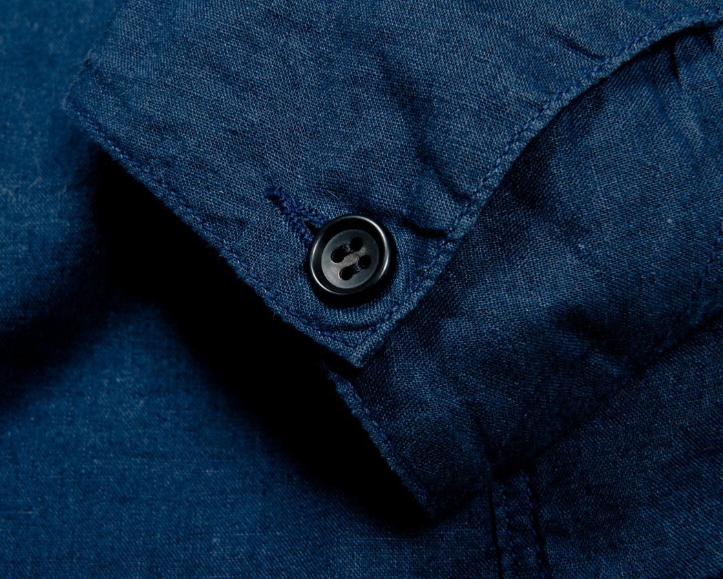 今回、三巻にして袖を直しやすく始末する事も考えましたが、おおもとのレイルロードジャケットの袖周りのステッチ・作りを残したかった事。そして、春夏と言う事もあり、袖を少しまくったりと着こなしでの遊びも考えて、ボタン止めにしました。