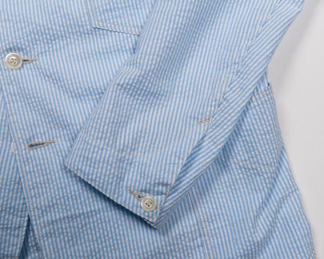 袖口はレイルロードジャケットらしさを忘れず、ボタン開きにしています。
