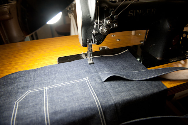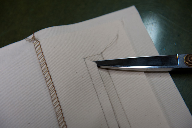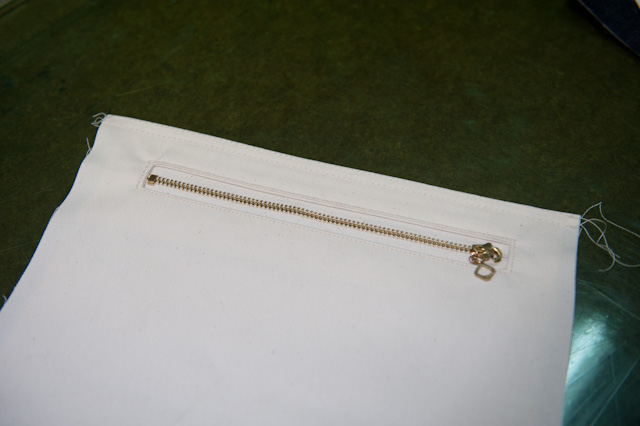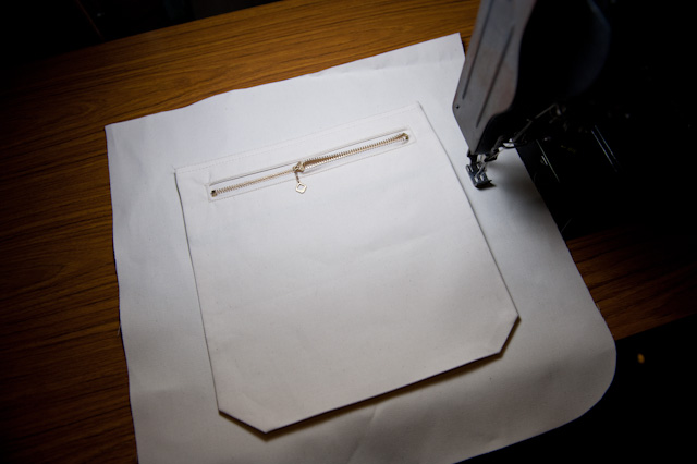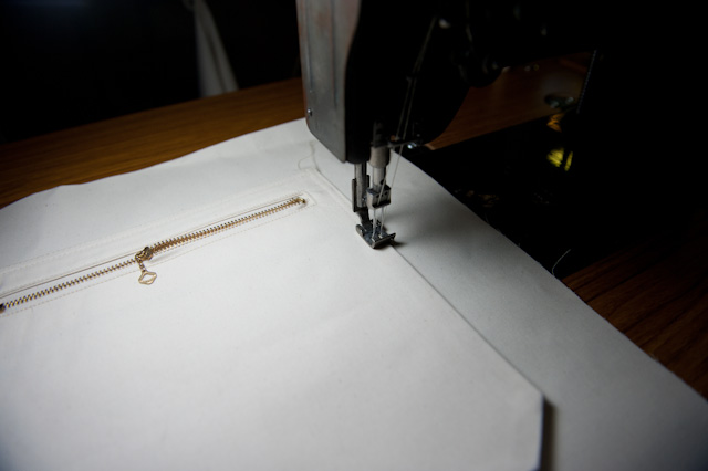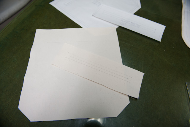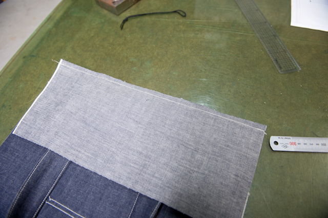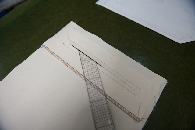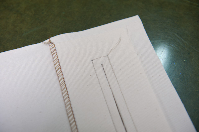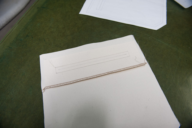 内ポケットの縫製。