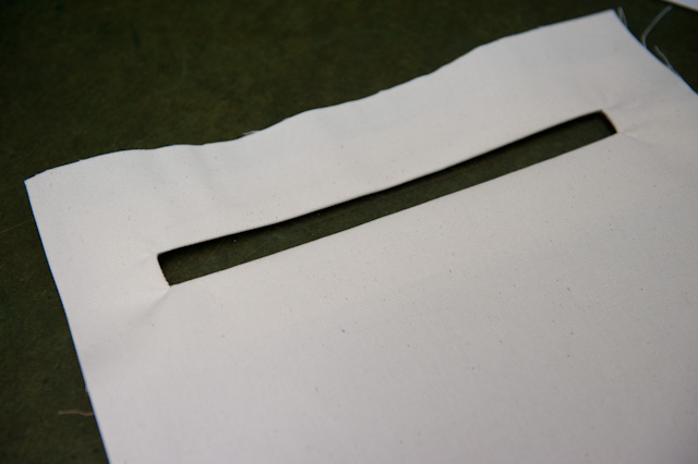 中に生地を一枚入れ込み、ポケット口を縫います。