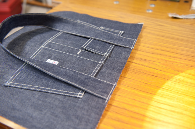ここも二本針。見えない部分ですが、やはりワークウェアらしいバッグの縫製にこだわります。
