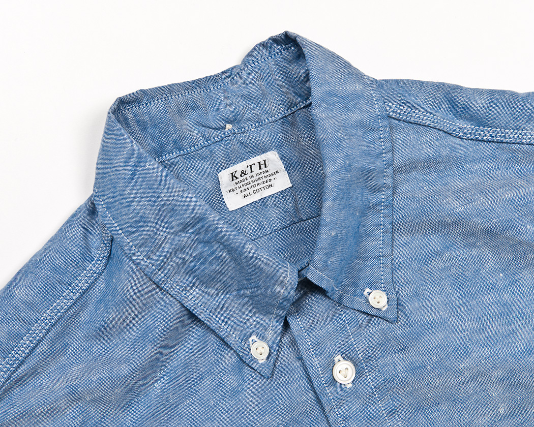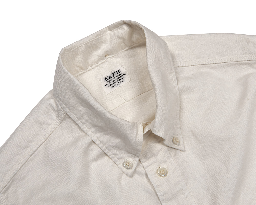 ヨコ糸に麻を使っている生地なので、独特のふわふわした風合いが襟にも出ています。これを殺さないように、台襟・羽襟には芯を入れていません。