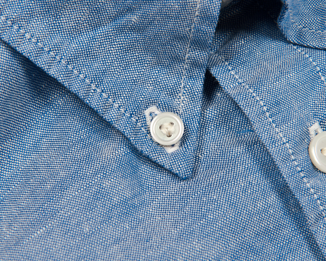 ボタンはHathaway Shirtよろしく三つ穴の耐衝撃ボタン。