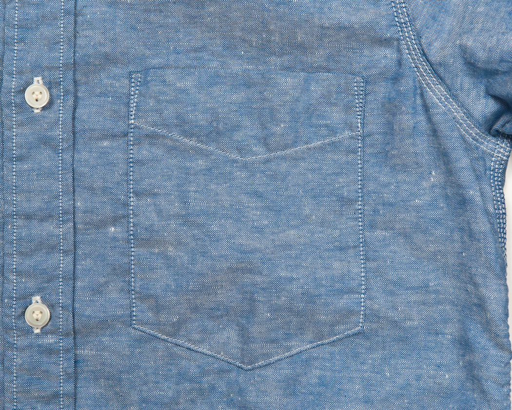 胸ポケットは5角形。現代の定番でいえば、樽型が多いのですが、少しクラシックに、五角形にしました。