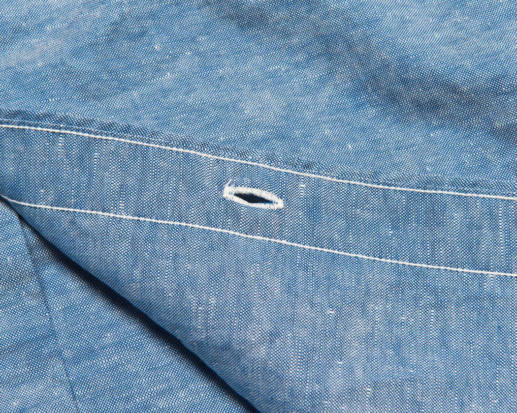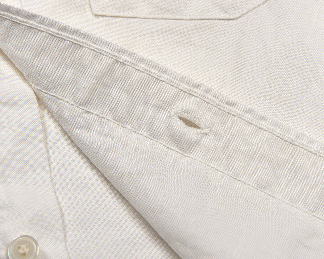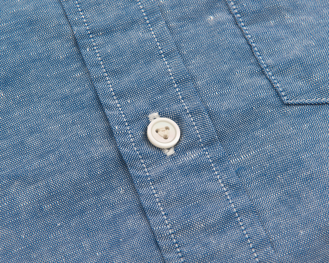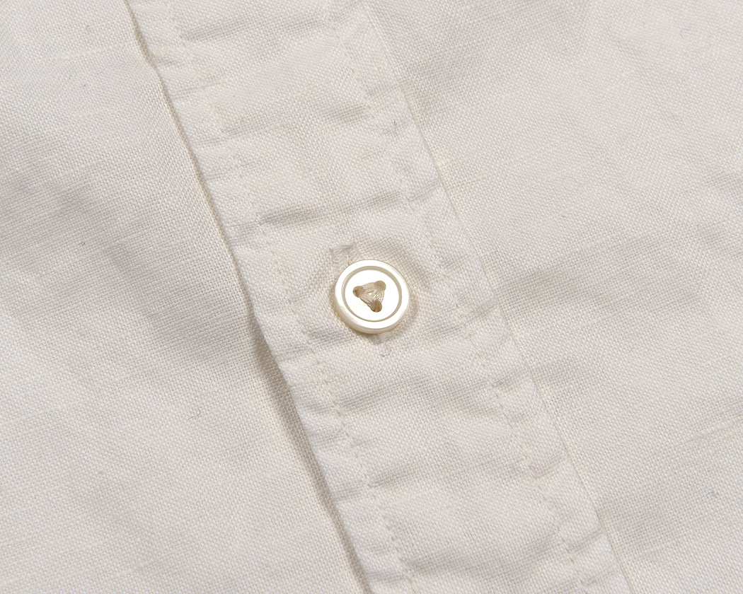 日本のボタン見本帳では「耐衝撃ボタン」という欄に乗っています。アメリカでも似たようなボタンは流通しているようで、耐衝撃ボタンを60-70年代あたりからは使っている事をアメリカにあるシャツメーカー社長が以前雑誌で触れていました。そこで、ポリエステルの中でもそれに絞り探し出しました。