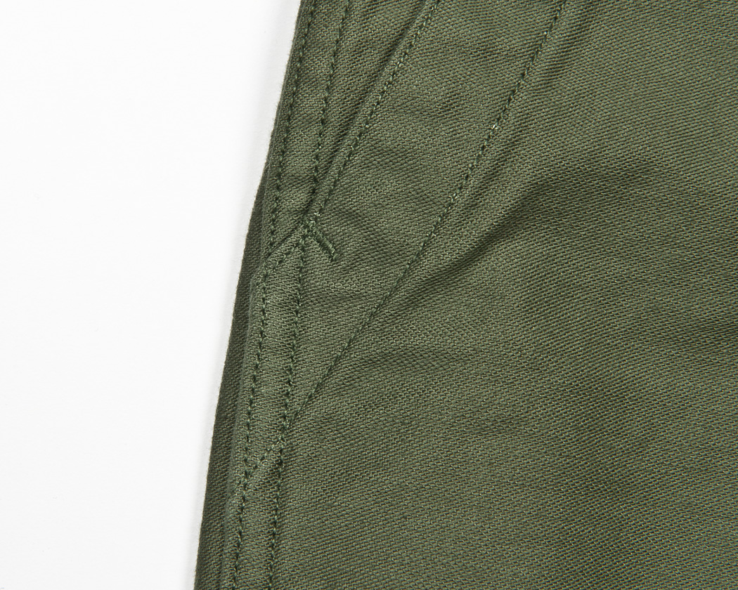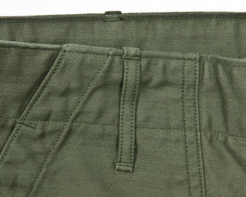 ループの上端をベルトの中に流し込む始末。 MIL-T-838Hを見ると、挟み込んでも、後からカンヌキ止め、どちらでもよいことになっていますが、参考にしたオリジナルに習うこと、また、やはり流し込みのほうがベーカーパンツらしいので、こちらを採用しました。
