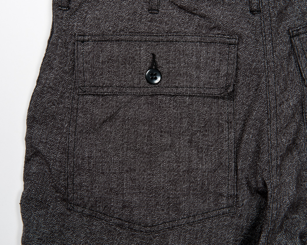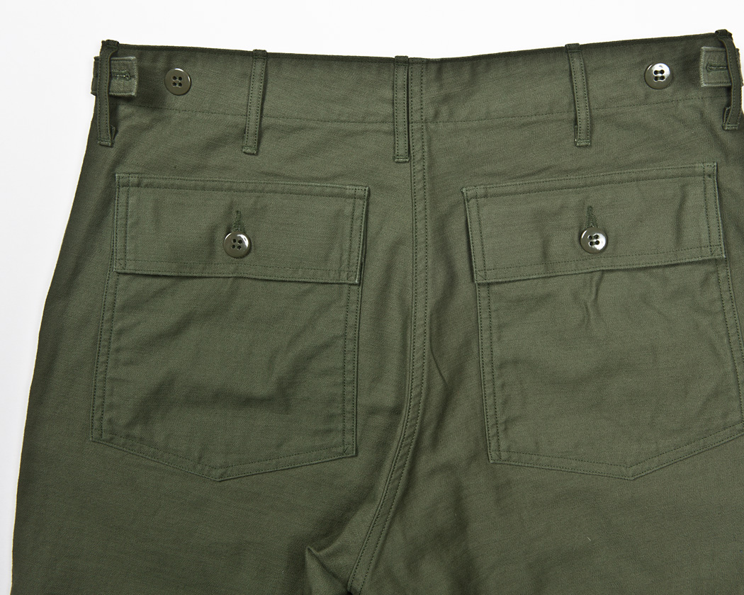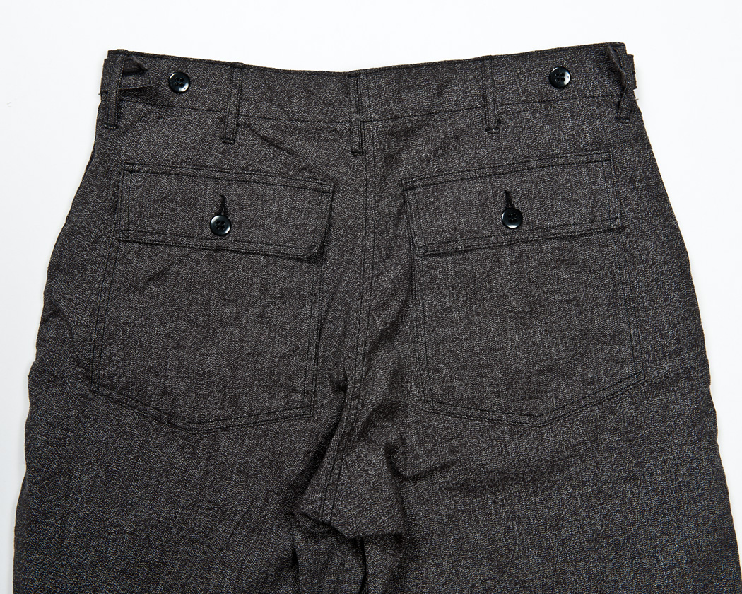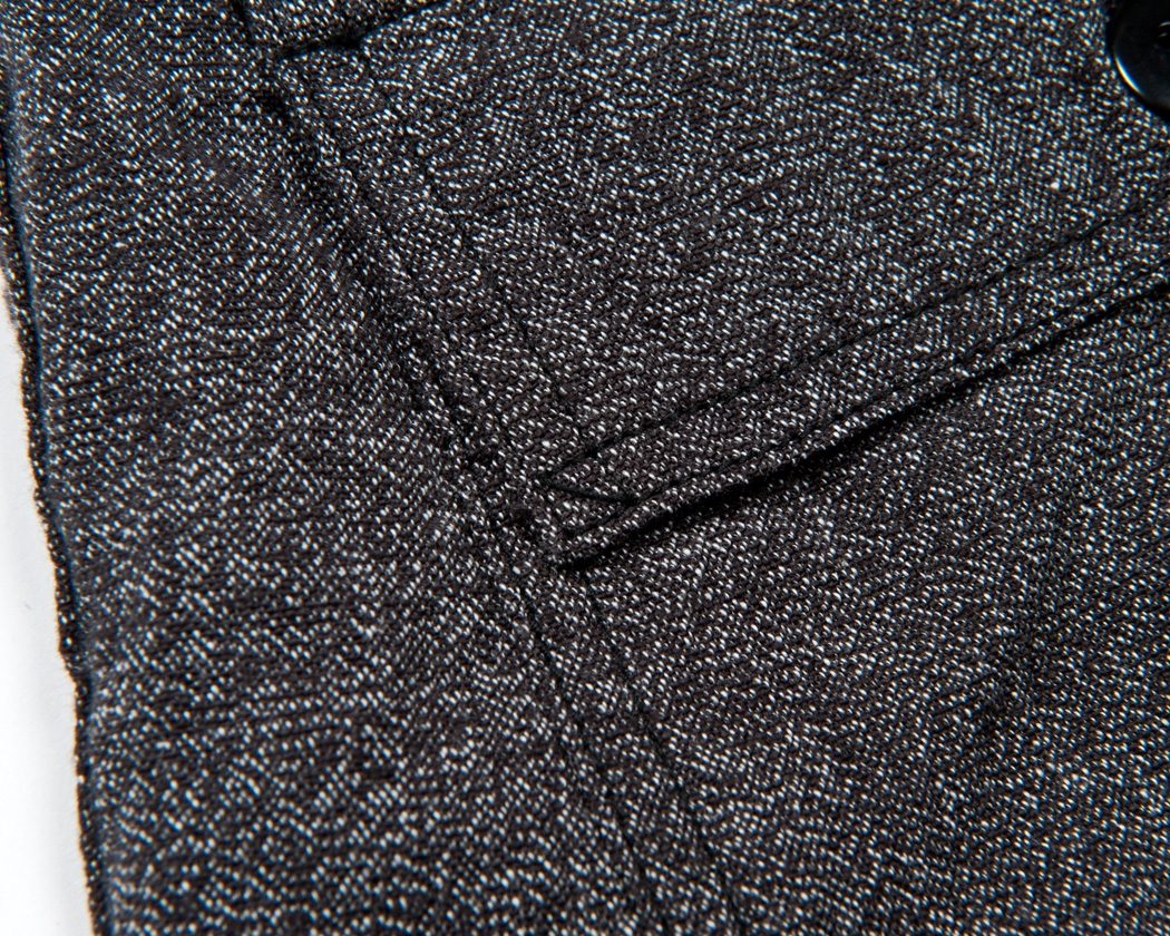 ポケットフラップ・後ろポケットつけ共に2本針ミシンなので、やはりここにも糸のワタリが出ています。