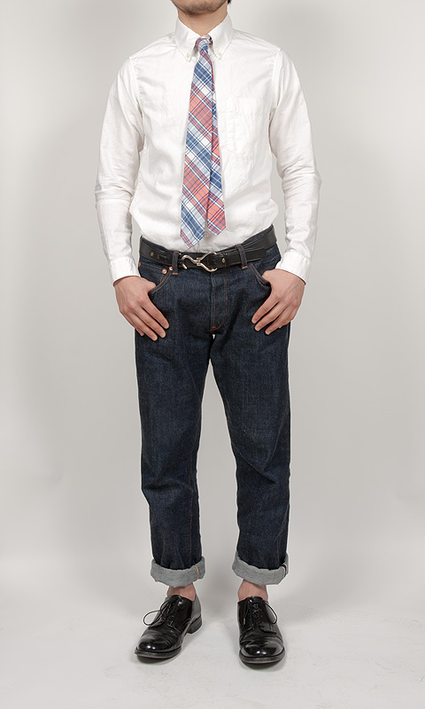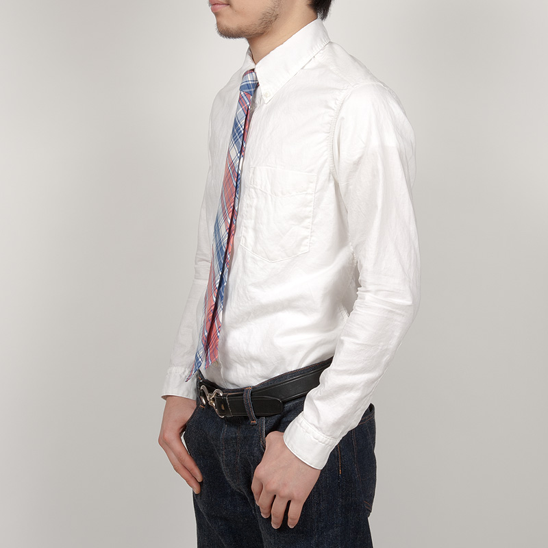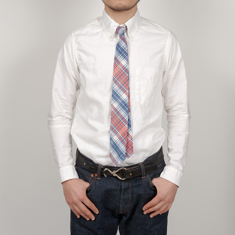 今回、ボタンダウンのみいつもより1ワイズ小さい14.5サイズを着用しています。