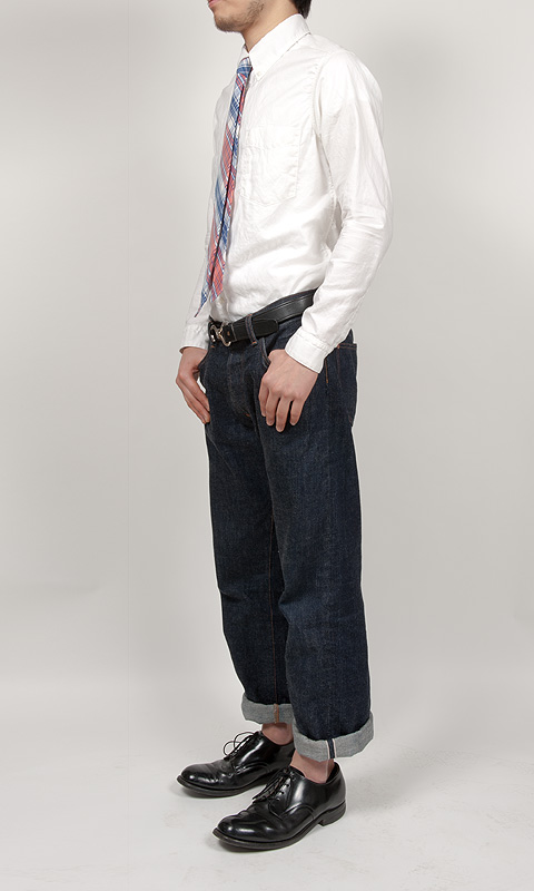 弊社製品で、だいたいシャツで15.5サイズ、ジャケットで38サイズ着用のモデルいわく
