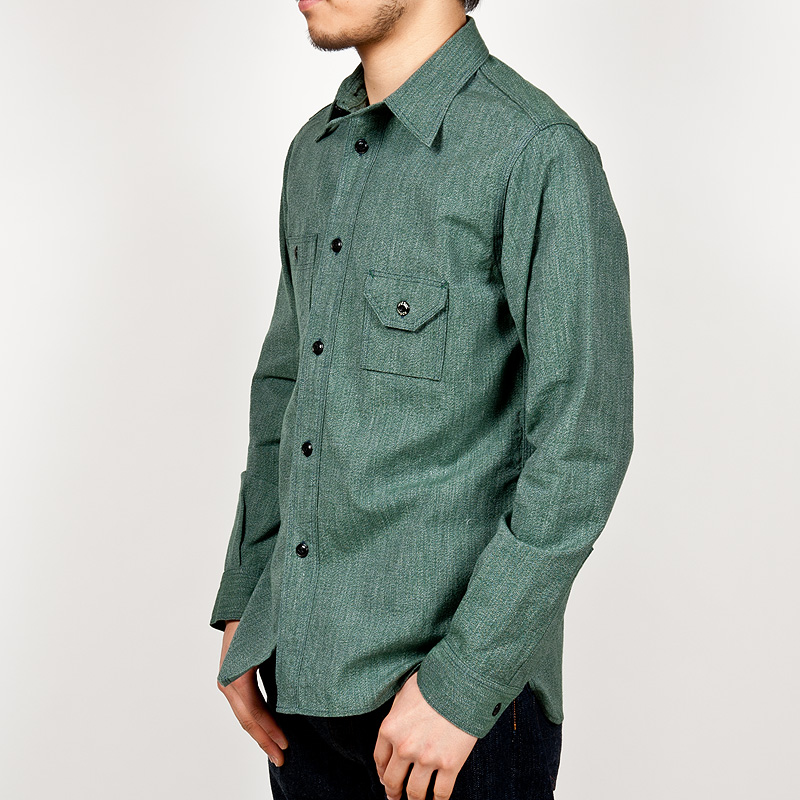 それでも、肩幅はわずかに落ちている。身頃や袖もBDに比べれば太い。ワークシャツらしさを残しつつ、ビンテージとは違う。適度なフィット感を目指しています。