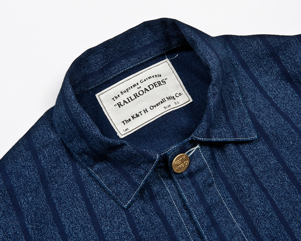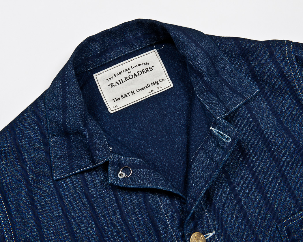 1910-20年代が設定年代なので襟周りもシンプルに。台襟は無く、身頃を挟み縫いしています。ボタンを閉じた時の襟の開き具合、襟の形、コバステッチといった部分は参考にした広告を基にしています。