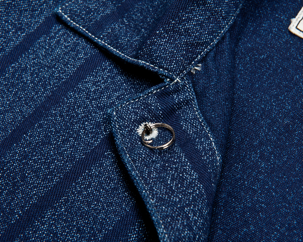 今では電子カンヌキと言って、座標軸を使ってミシンにどこにどう針を落とすかを指示してあげます。この菊穴は、ビンテージオリジナルを見ながら目数を減らしそれらしくなるように作った物です。
