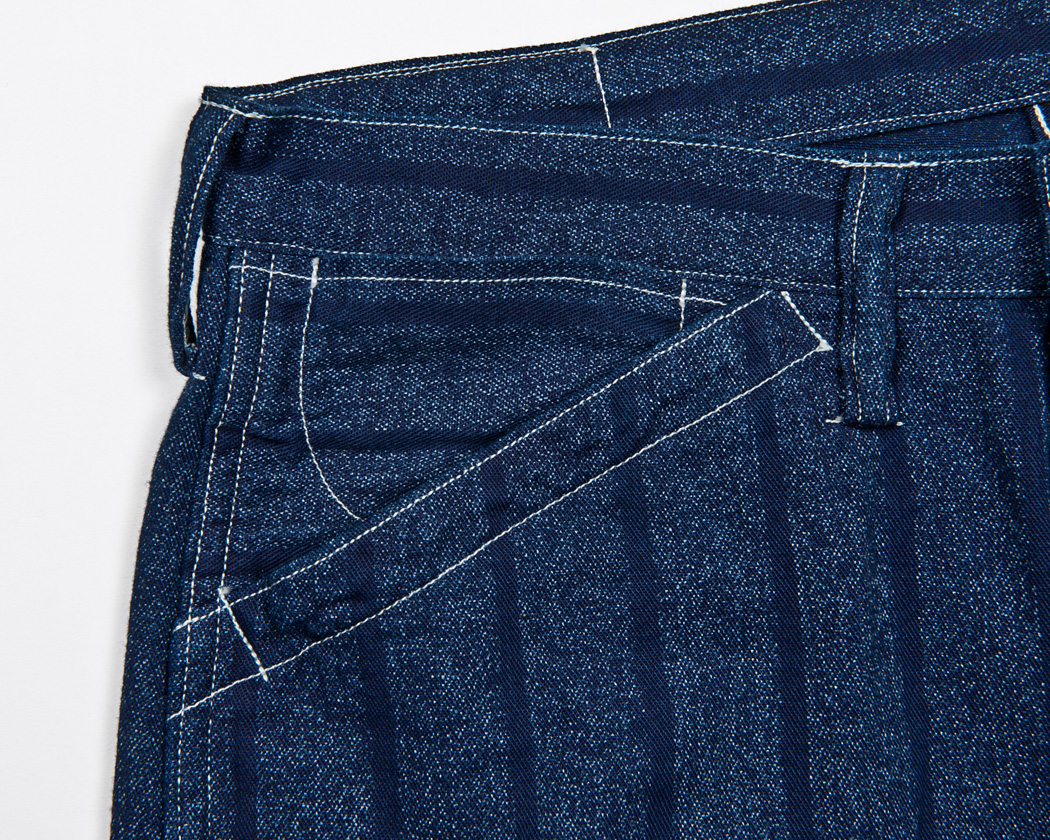 ポケット口のステッチも少し幅が広く、開きどまりにはカンヌキではなくミシンで補強を入れています。