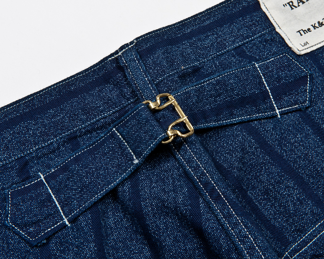 その点をご了承のうえご注文ください。もし気に入らなければ切ってしまうのも良いと思います。実際、ビンテージで尾錠を切ってしまったパンツを見かける事があります。