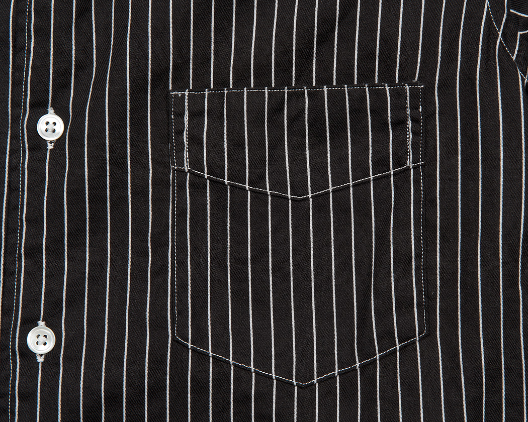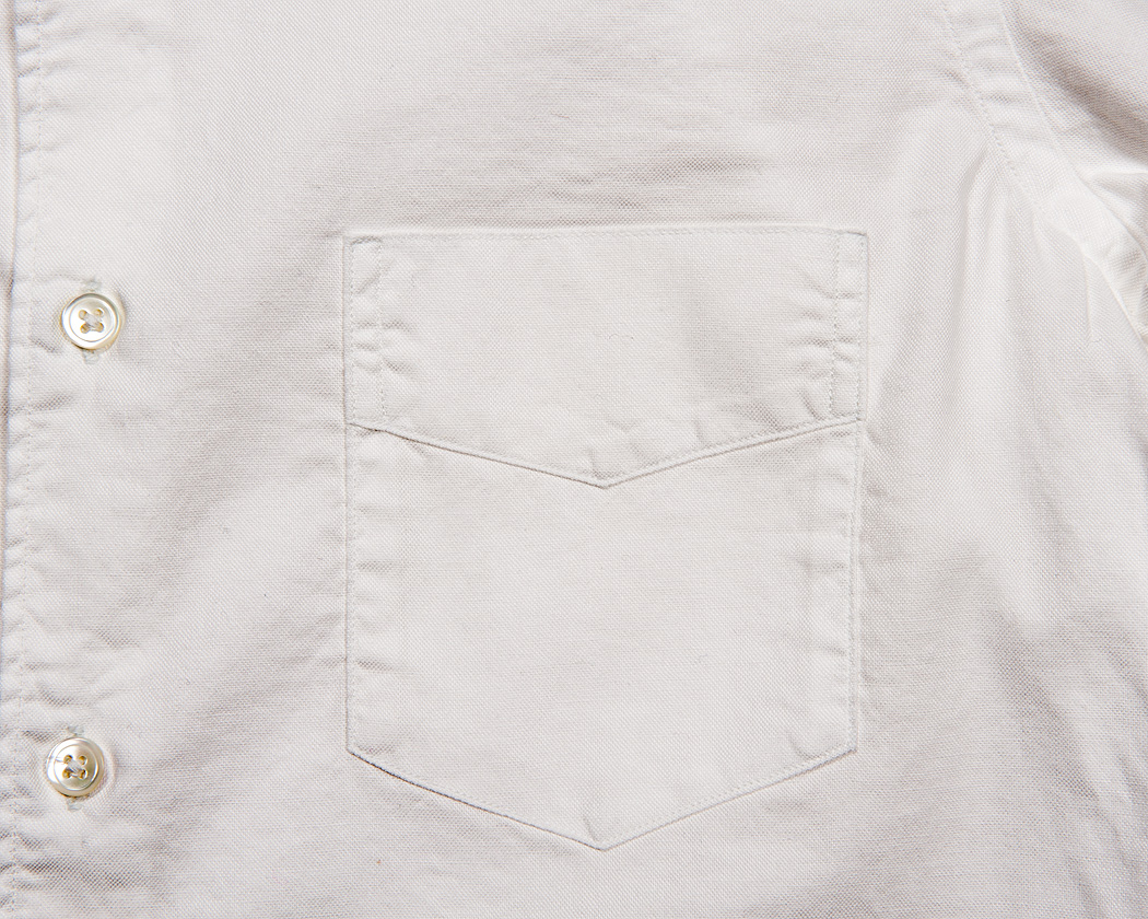 胸ポケットはシンプルな5角形。それでも、このポケットのある・なしで着た時の便利さが違います。