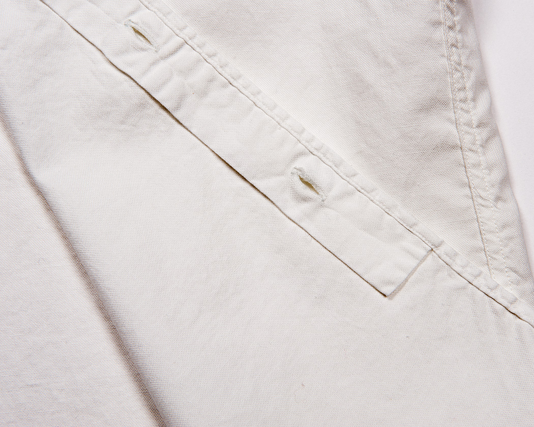 フロント始末は共生地を折って流し込み、ボタンホールで止めています。