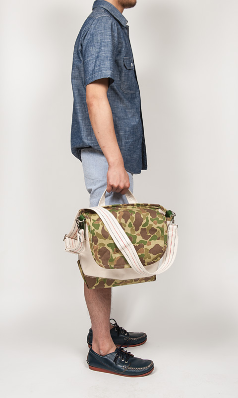 そこで、弊社ツールバッグの作りを活かしつつショルダーに。ポイントは背中についた持ち手。ショルダーバッグにこのちょっと持つ持ち手が付くだけでどれだけ便利になるか。これは使った人にしかわかりません。