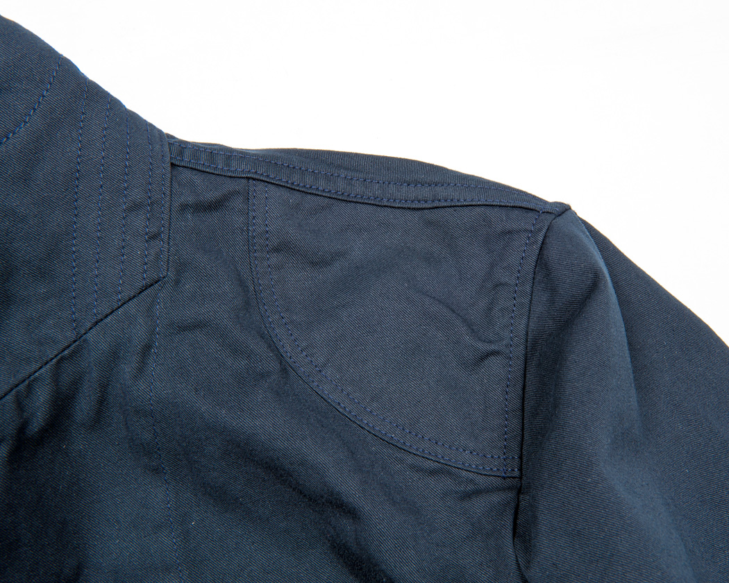 ポイントは、襟の付け方。表地・見返しと別々につけ割っています。春夏用の1904 Jacketははさみ襟でした。