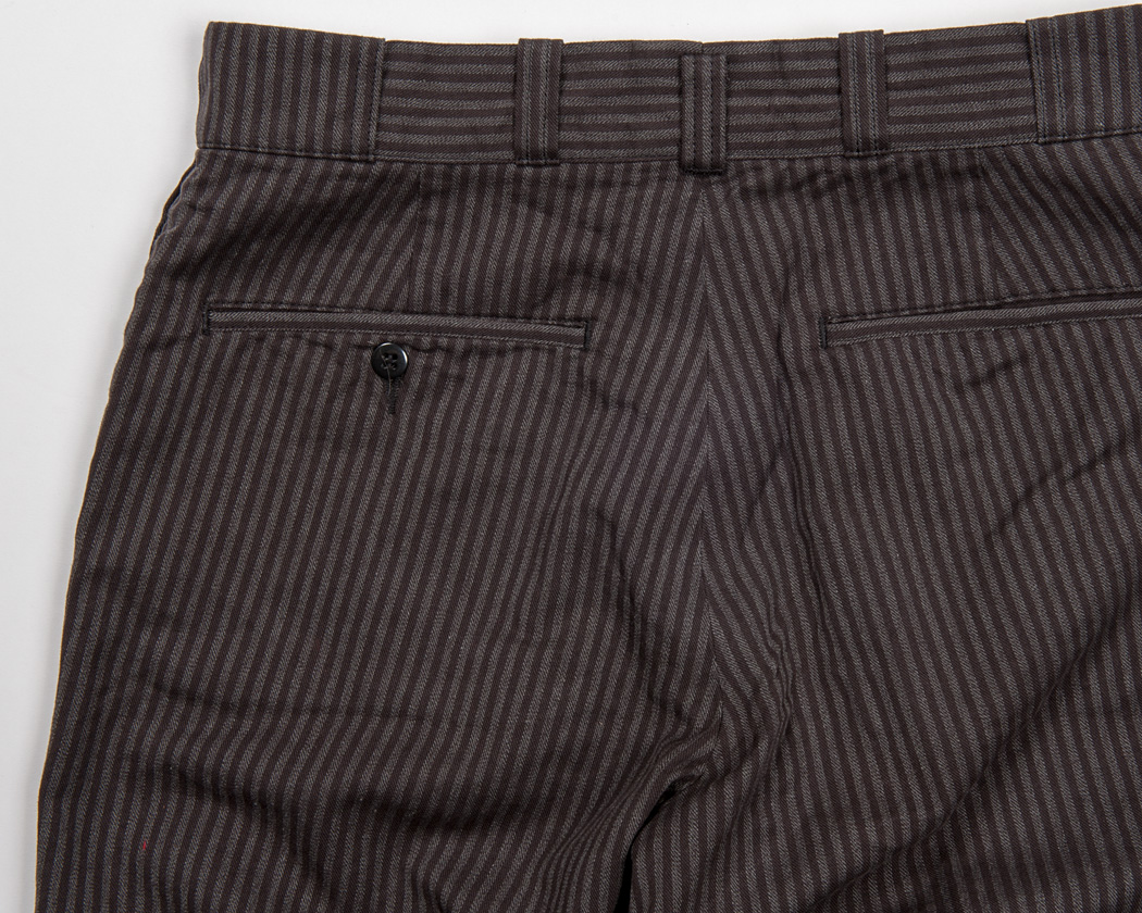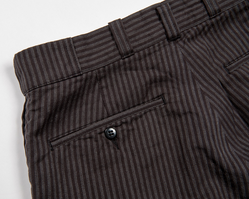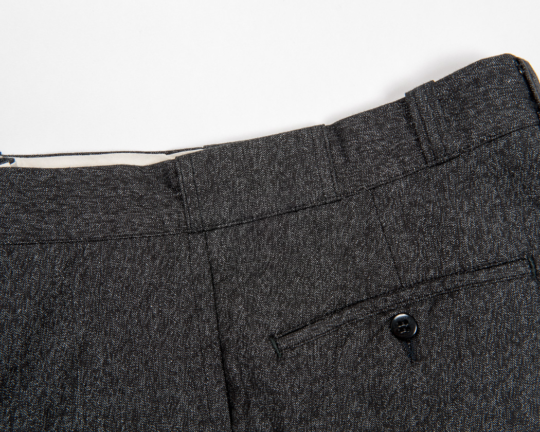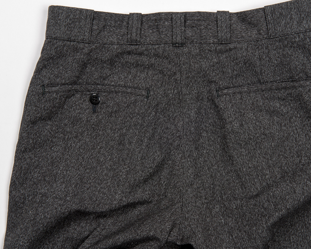 これは、このトラウザー自体が、左右別々の物を後ろ中心でつなぎ、最後に後ろ中心のループをとめているからです。