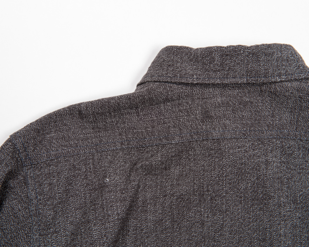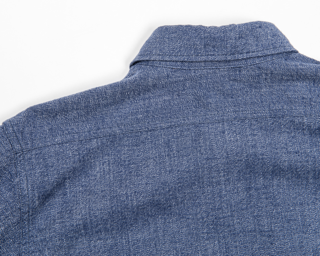背ヨークはまっすぐ。チェーンステッチのダブルでたたいています。