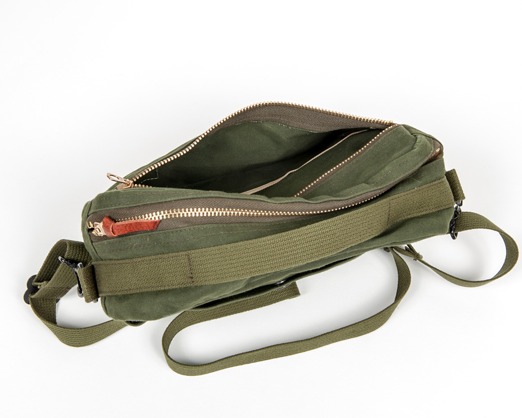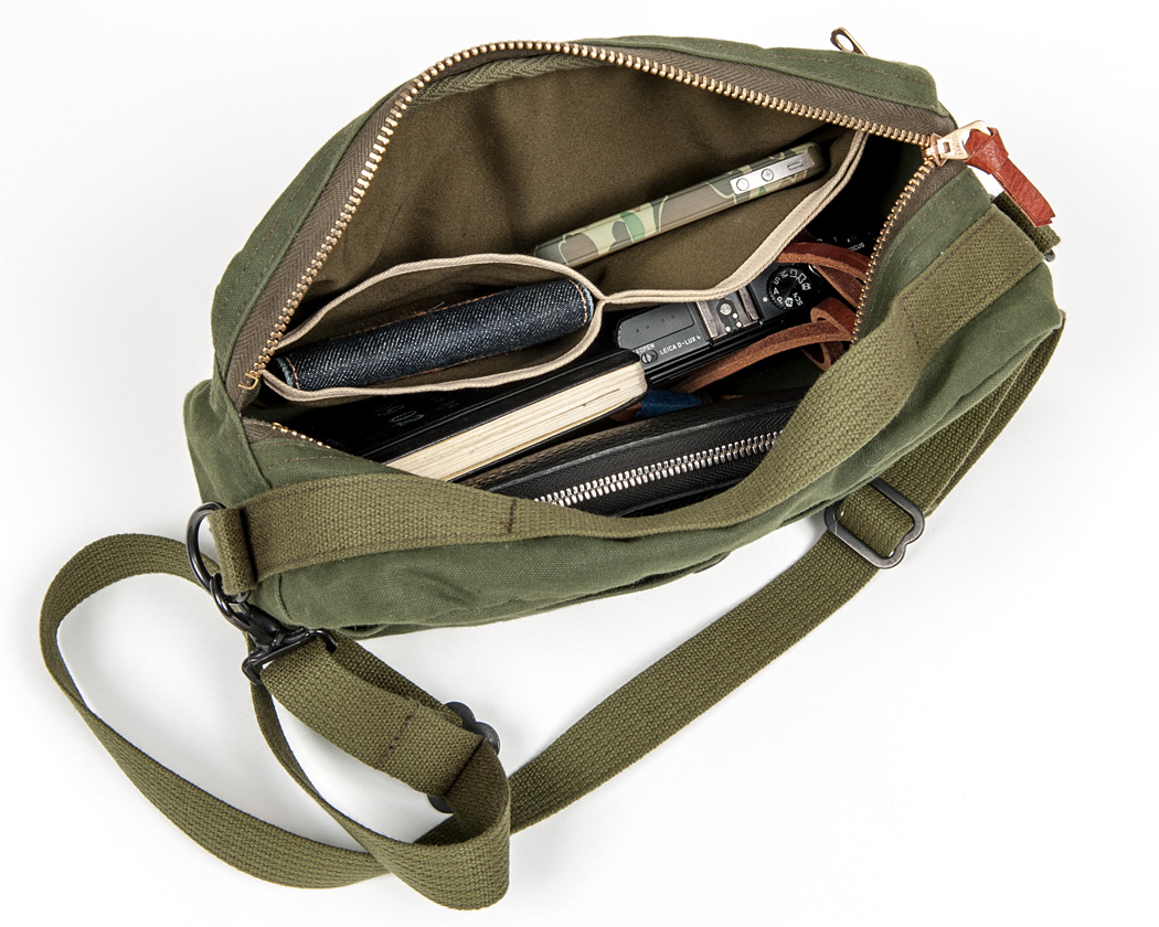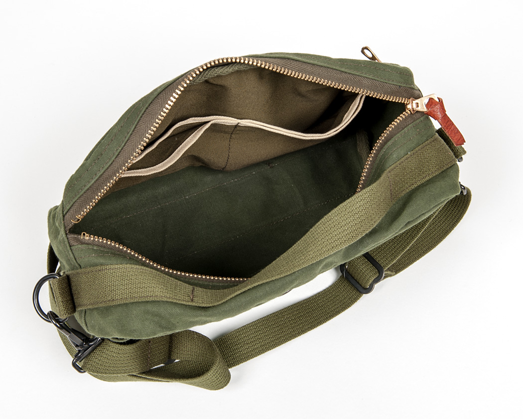 見えづらいですが、バッグ本体のつなぎ部分は太めのカーキの杉あやテープでパイピング。このテープも綿。