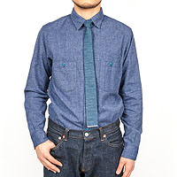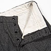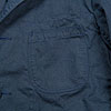 ポケットに補強布を当てる、隠しポケットを付ける、前肩にハンティングジャケットよろしくパッチを当てるといった、ブレザーではあり得ない仕様を盛り込みつつ、色や三つボタン段がえり(あえて一番上のボタンは逆目であけていませんが)、スリーパッチポケット、こういった部分にはネイビーブレザーの要素を残しています。