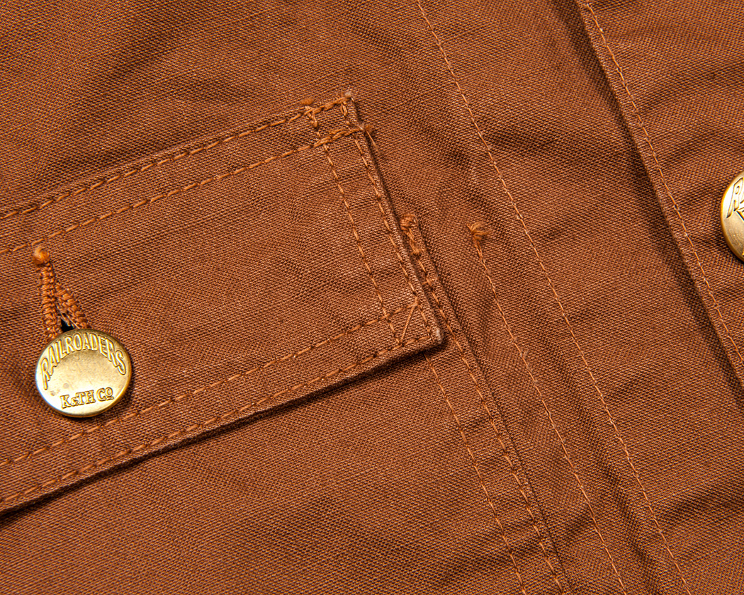 フラップ、ポケット本体も2本針ミシンで縫製するためチョウチョがあちこちに出ています。