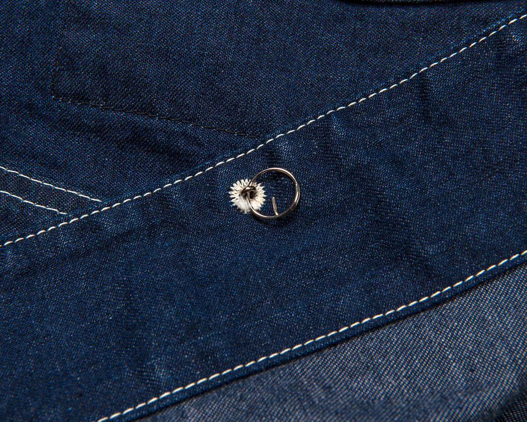 インディゴデニムのLot721は、前立てつけステッチの下糸を黒にしています。すべて白で縫った典型的なワークウェアとは違う、オリジナルのポケットが浮き立つような印象が出ていないでしょうか。