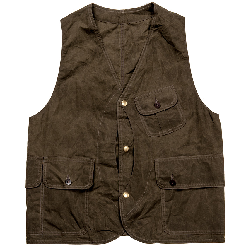 ビンテージのフィッシングベストを参考に、普段着として着やすいようにディテールを修正しています。