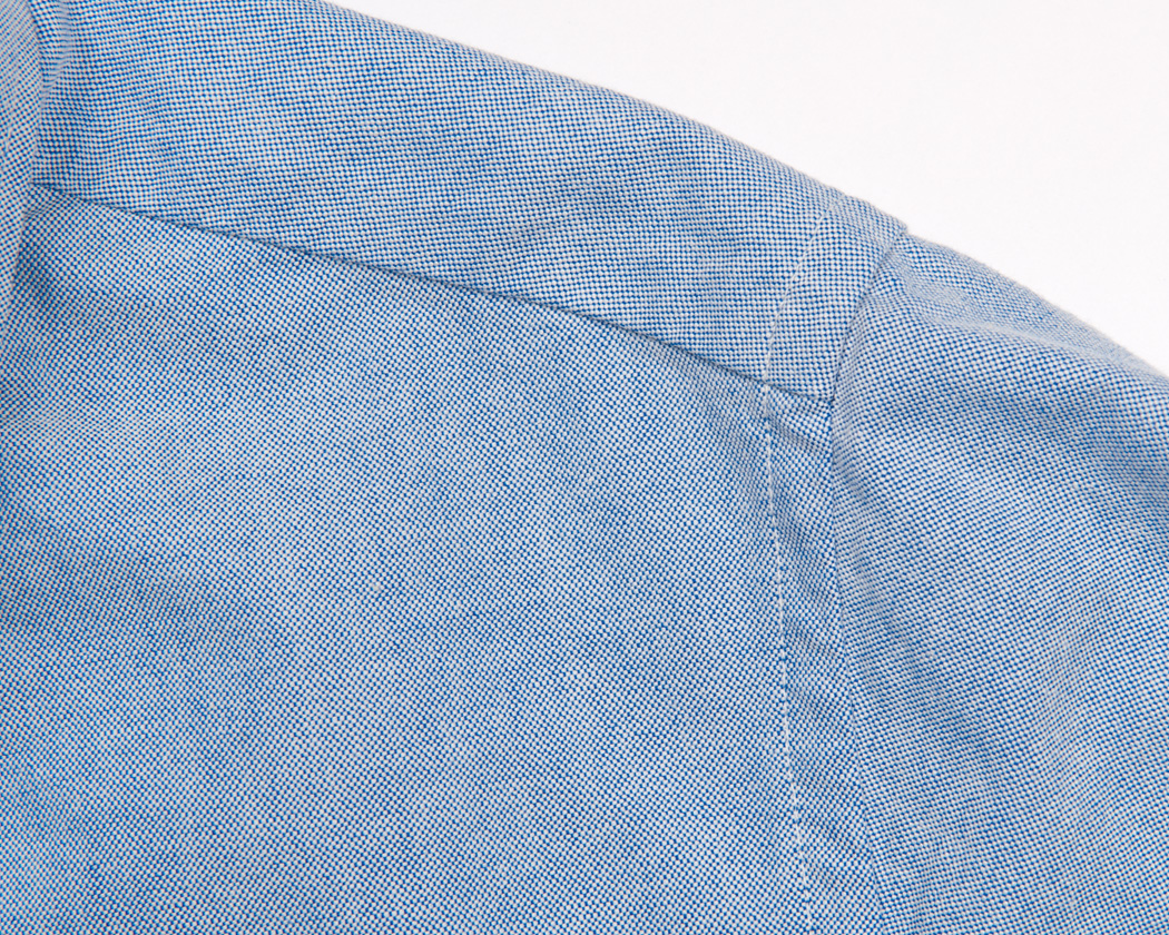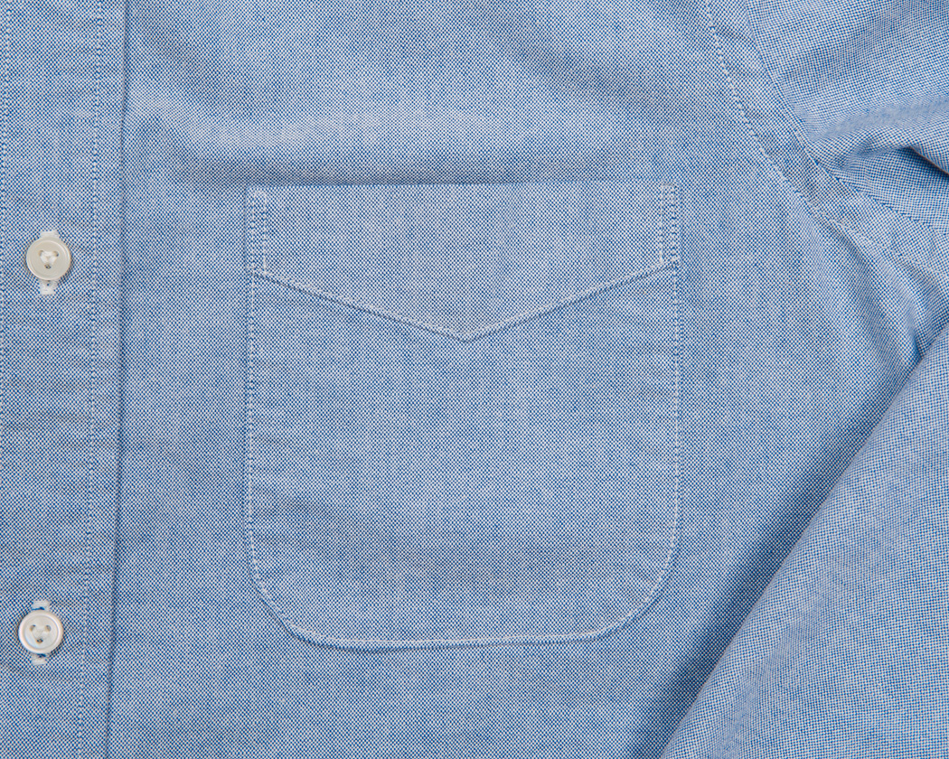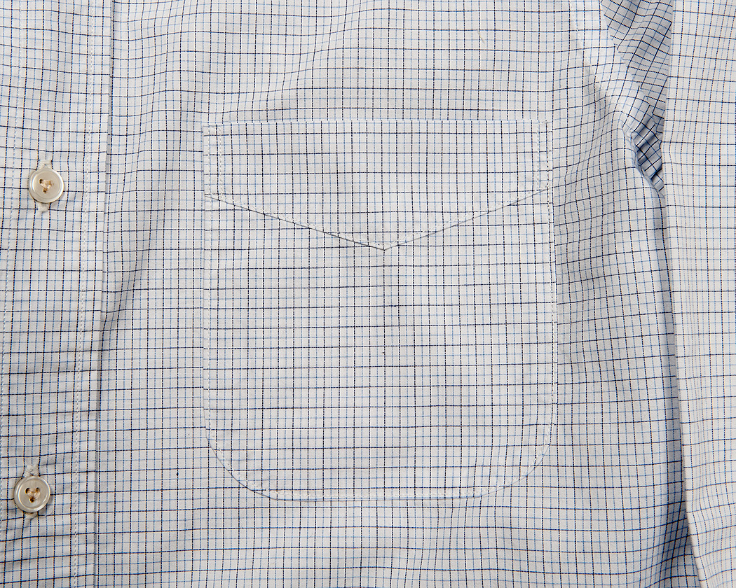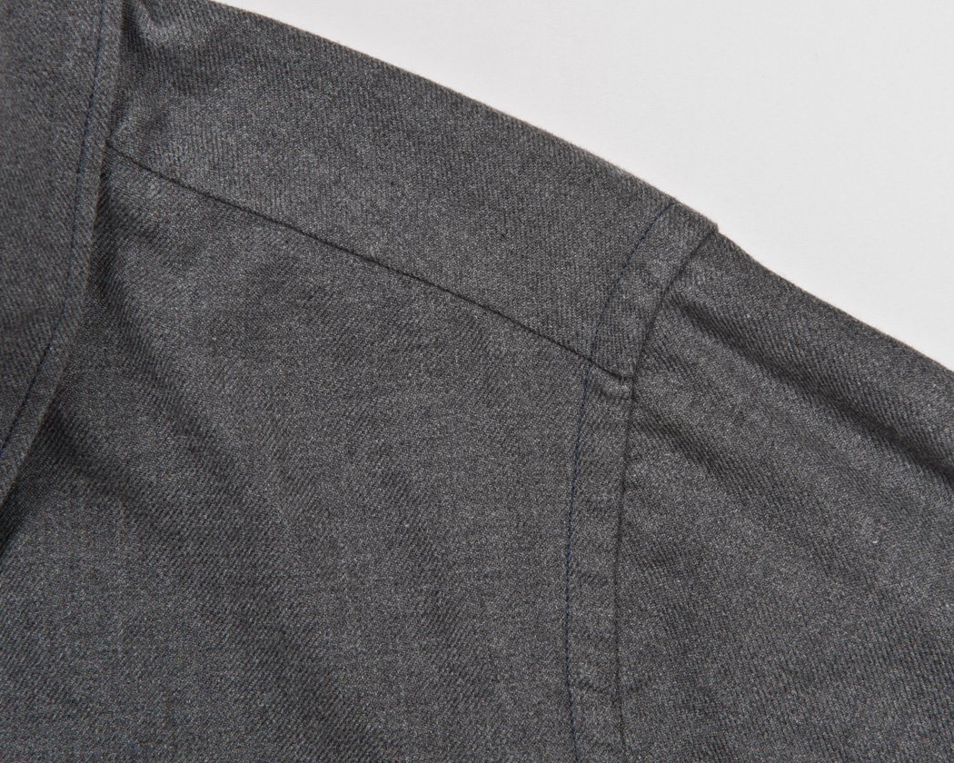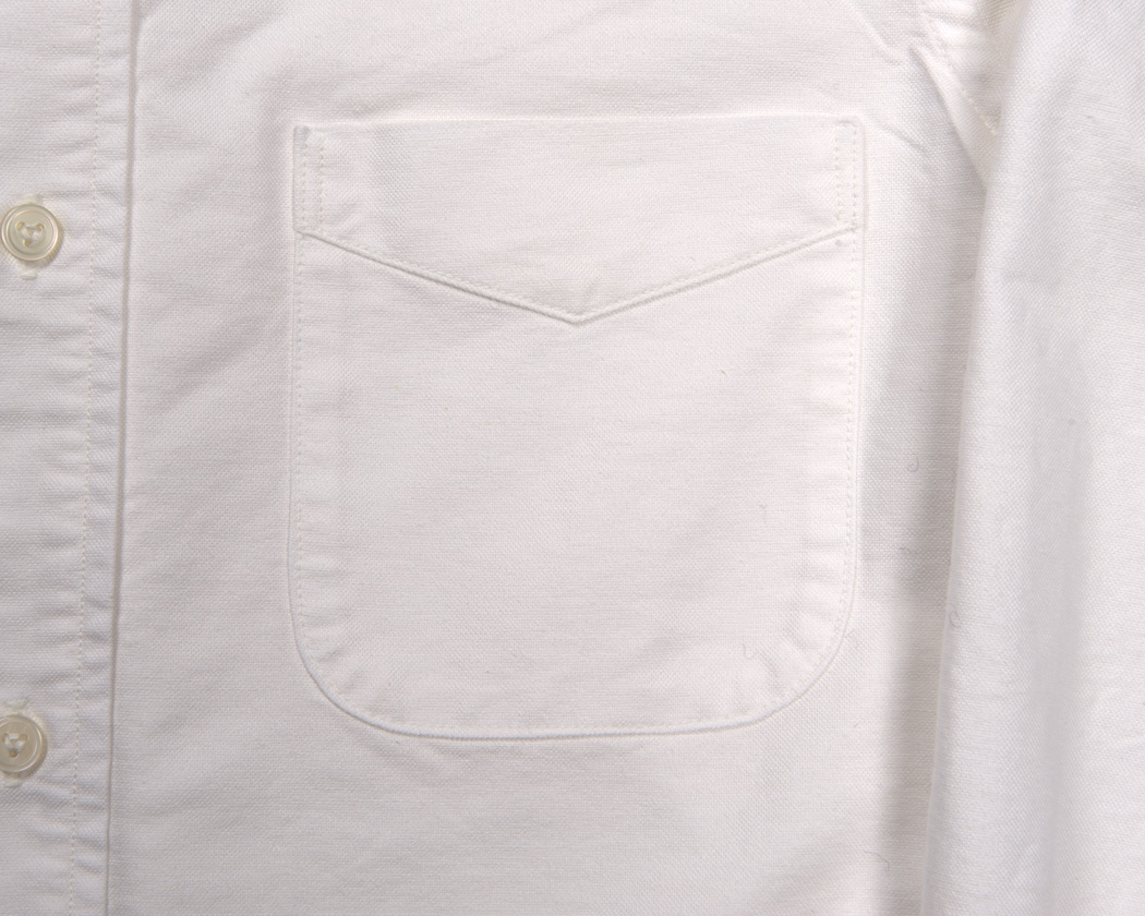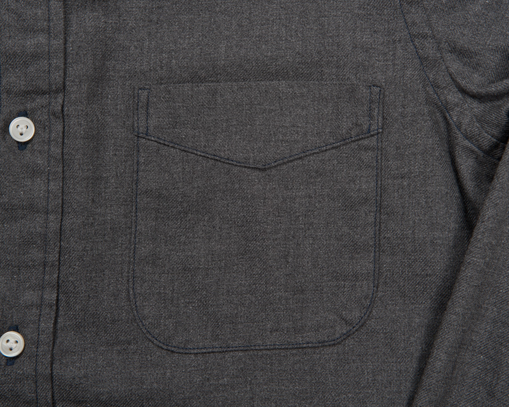 胸ポケットはシンプルに樽型。ただ、口を内側ではなく外側に返すのがWORKERSらしさ。細かな部分ですがワークウェアの雰囲気を出せればと使った仕様です。