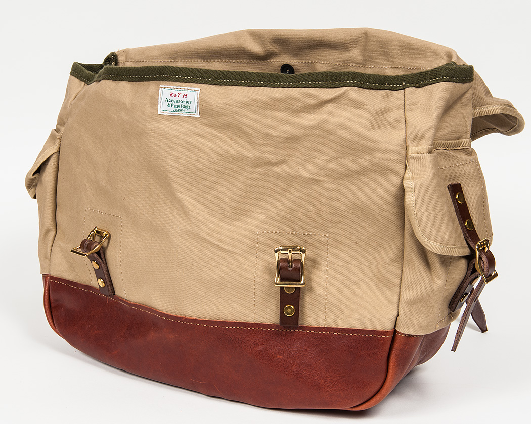立体的な形のフラップ。フラップは二重に成っていて、ステッチでヨコ1線に止めています。