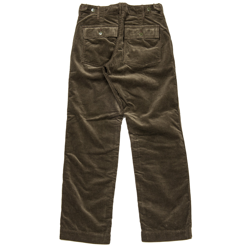 作り自体は、WORKERSではおなじみのミリタリーそのままの作り。腰裏にスレキを使い、コーデュロイ独特の毛足による引っかかりを押えています。始末は帯つけミシン。