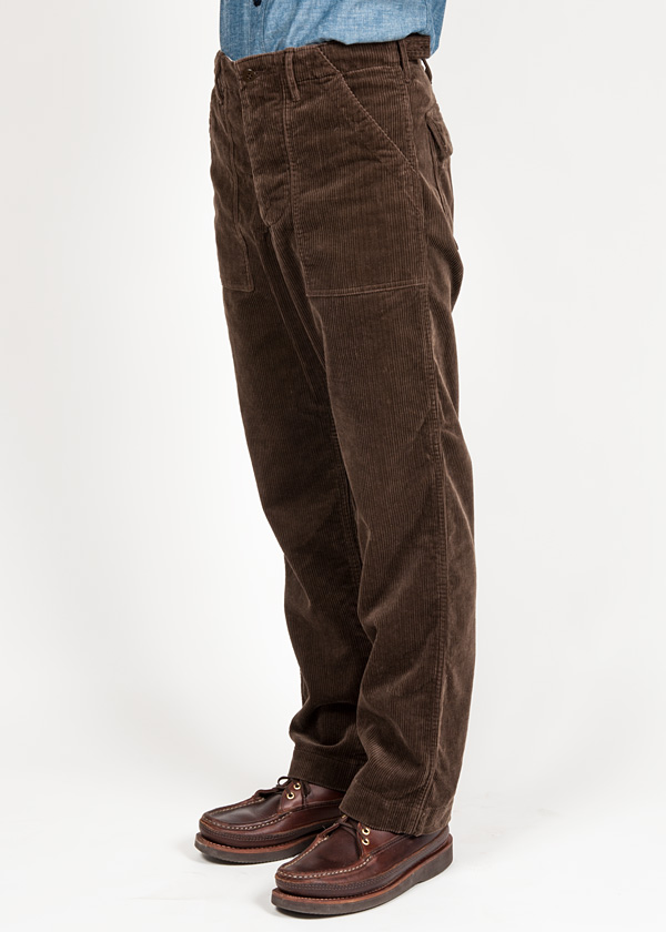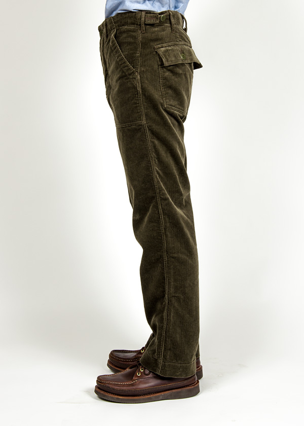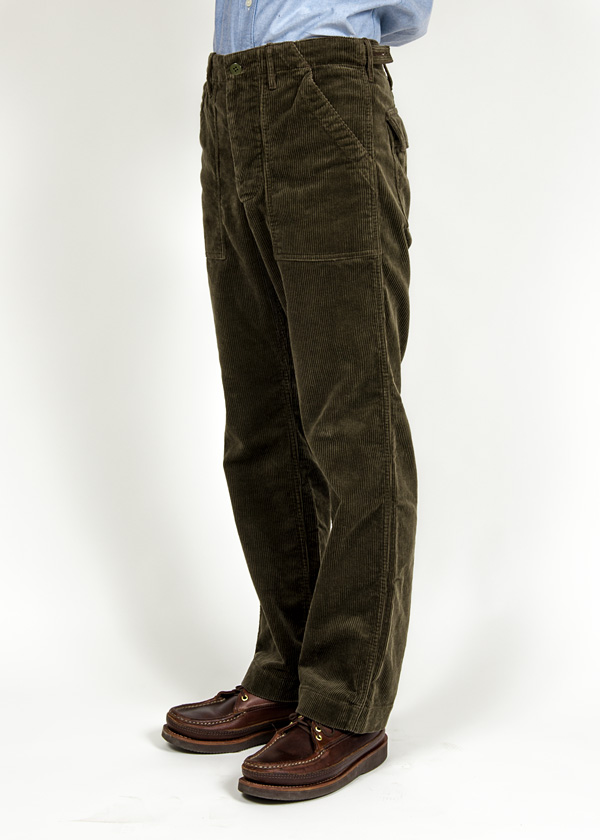 そこで、ミリタリーのデザインにクロージングよりのシルエット、そしてコーデュロイを組み合わせることでありそうで無いボトムスになっていると思います。