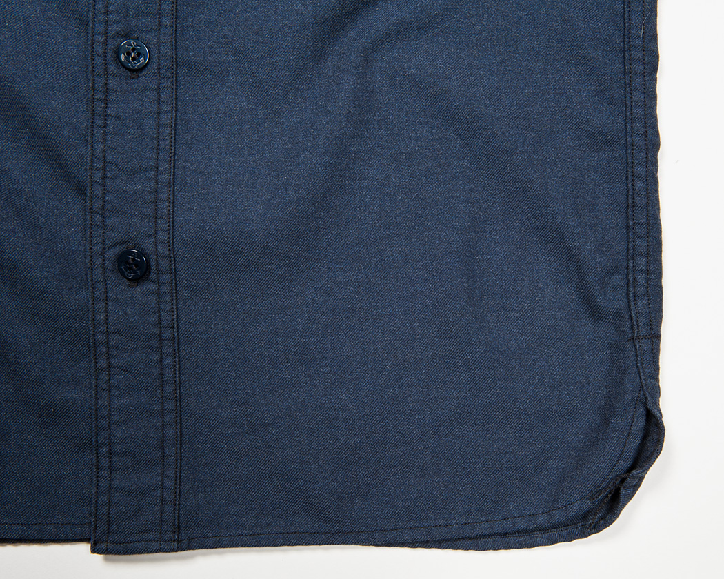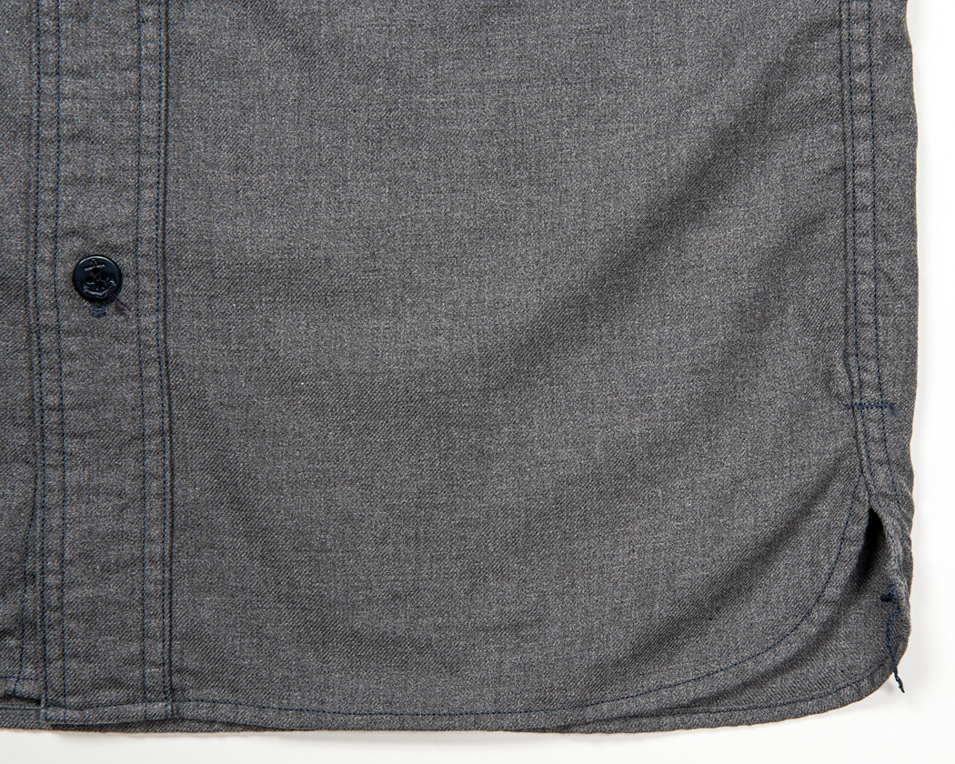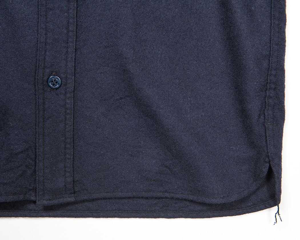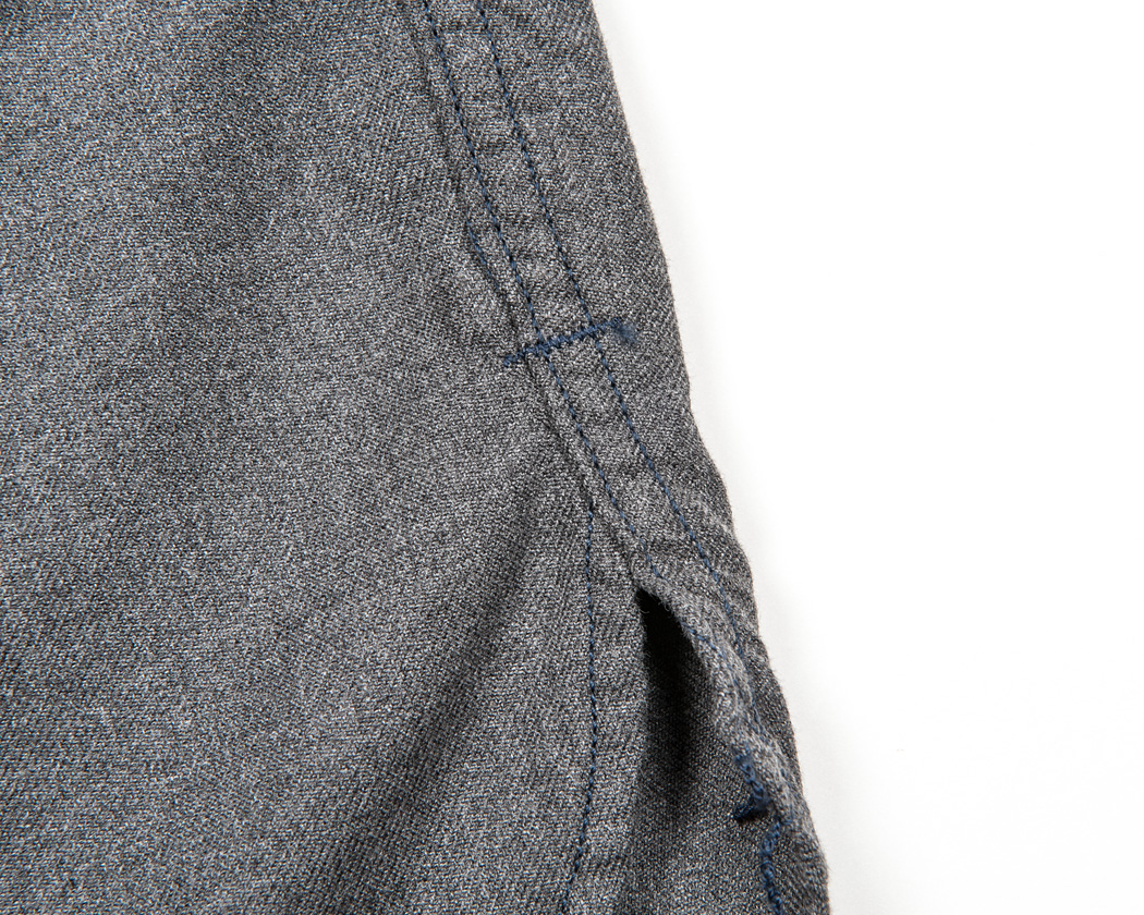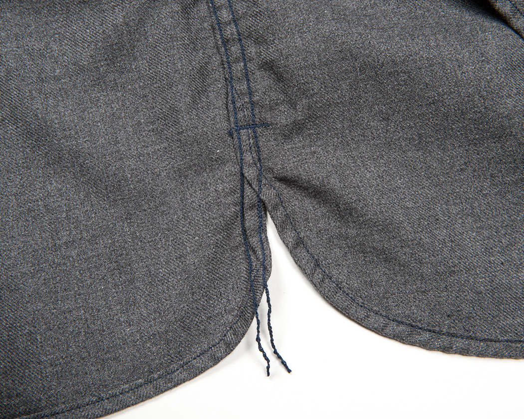 裾のカッティングは、脇までまっすぐ行っていきなり切れあがるもの。