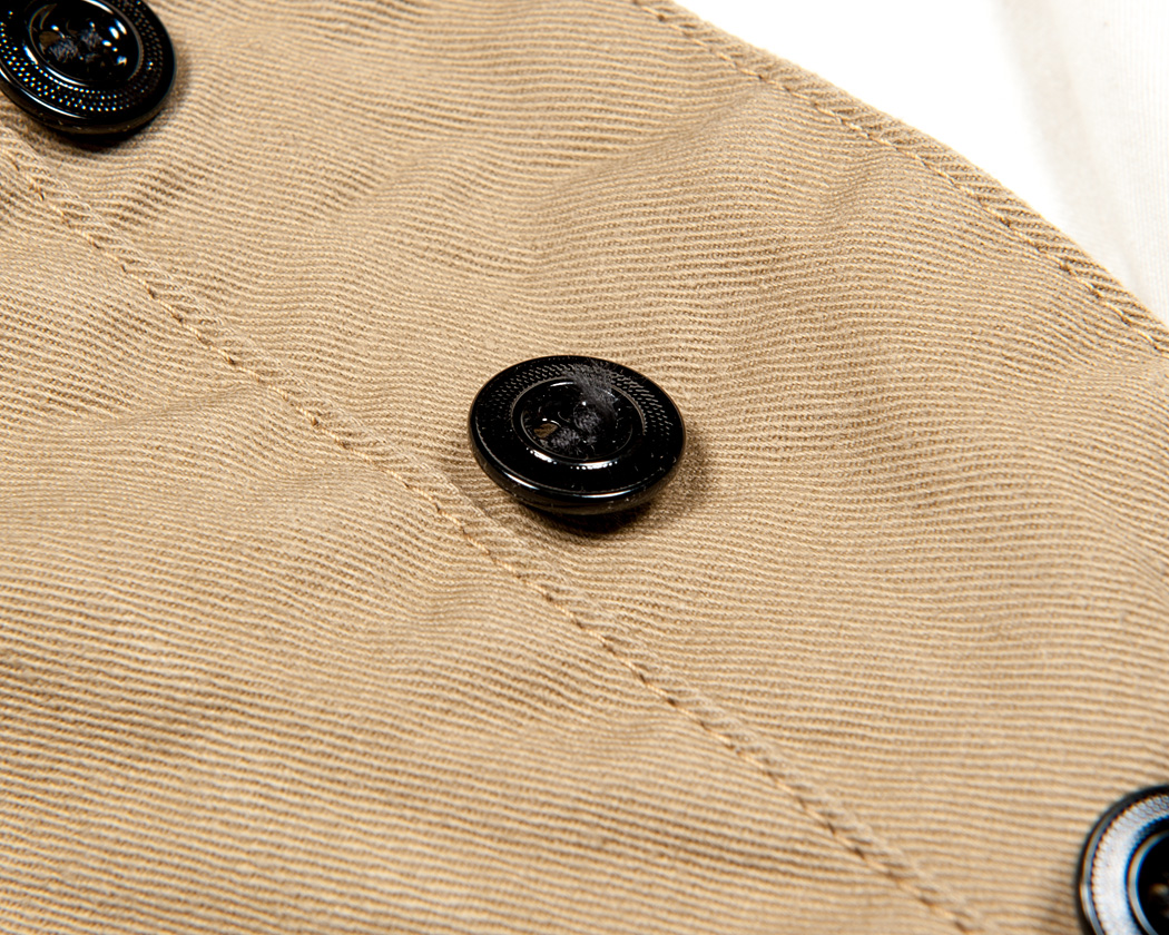 板をプレスする方法で作られているので、ボタン穴周りのギザギザがビンテージそっくりに作られています。