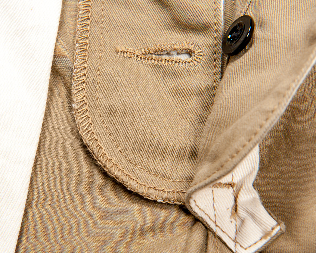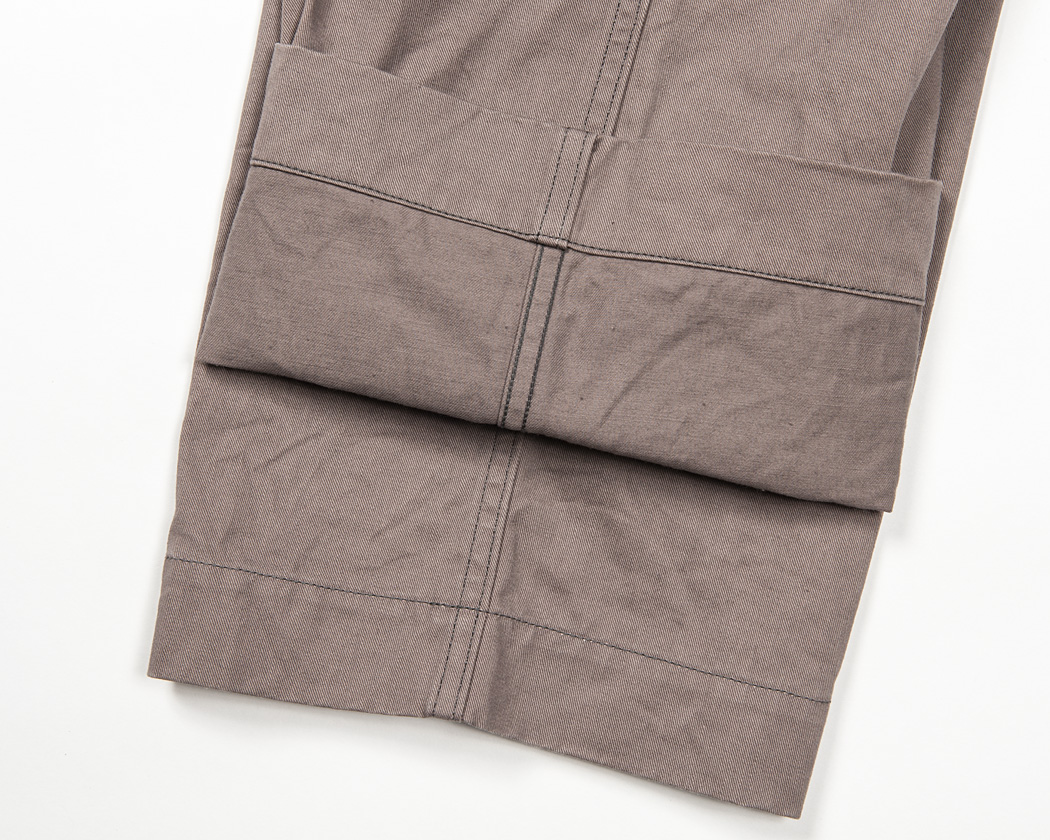 モチダシ側は、あえて断ち切り始末。ビンテージのトラウザーをお持ちであればぜひ見比べてみてください。このような断ち切り始末がほとんどです。そこで、あえて断ち切りにしています。