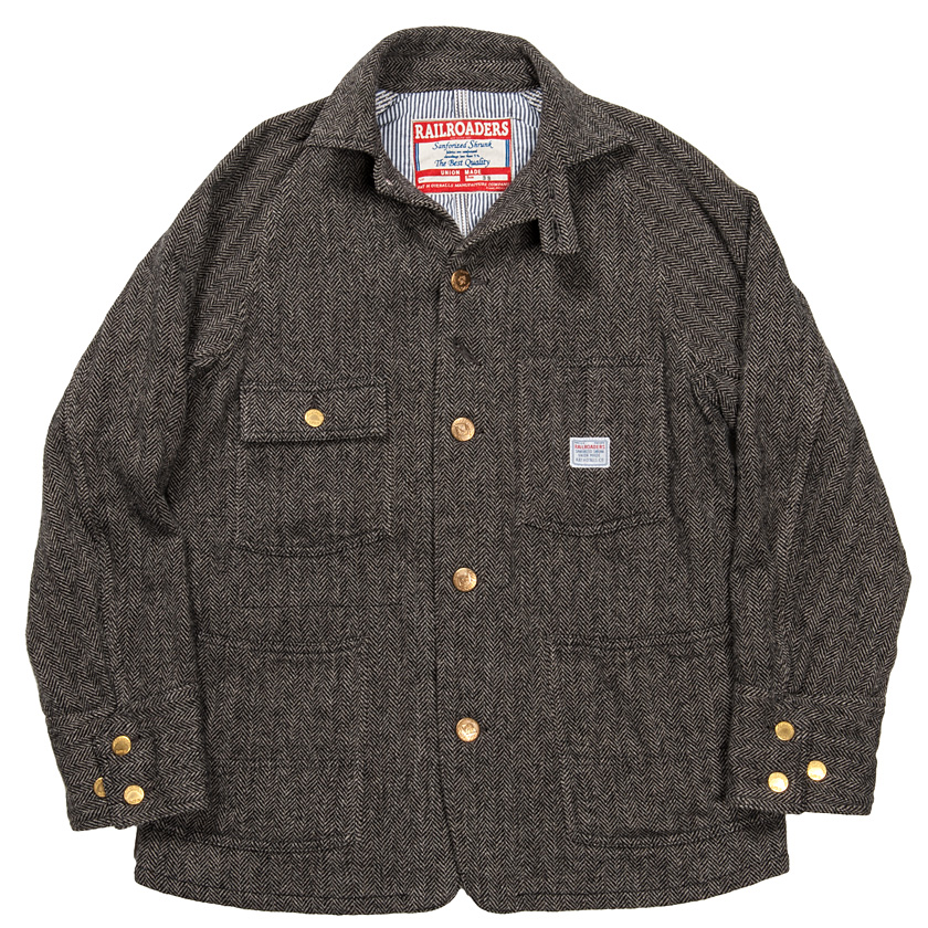 カバーオールというワークウェアの象徴、生地はヘリンボンツイードとオックスでアメリカントラッドの象徴。