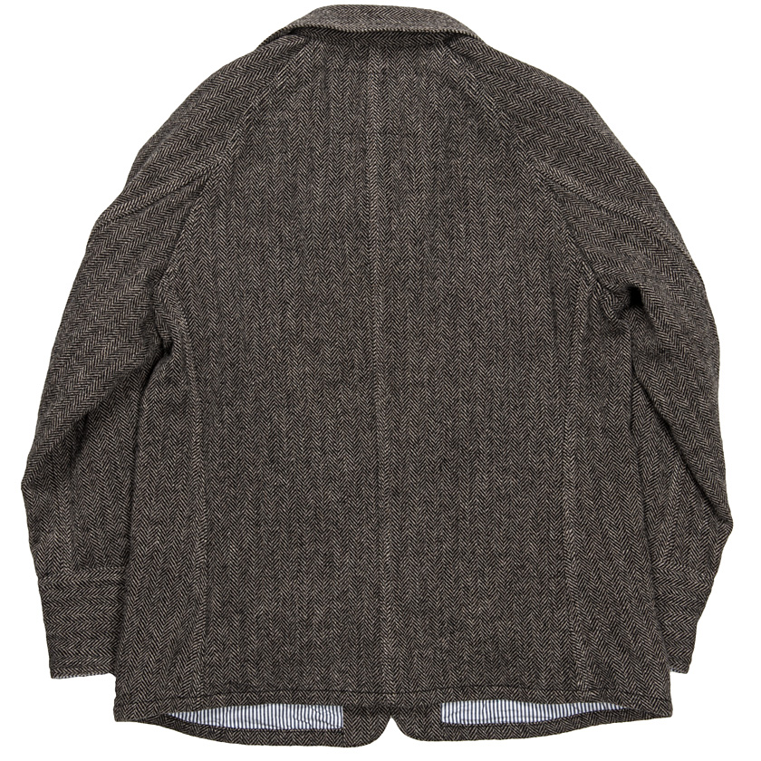 WORKERSではおなじみのカバーオール。表地をツイード/裏地を滑りの良い綿オックスフォード。この二枚の生地を縫い代の中で仮止めして、一枚ものとして縫製したカバーオールです。